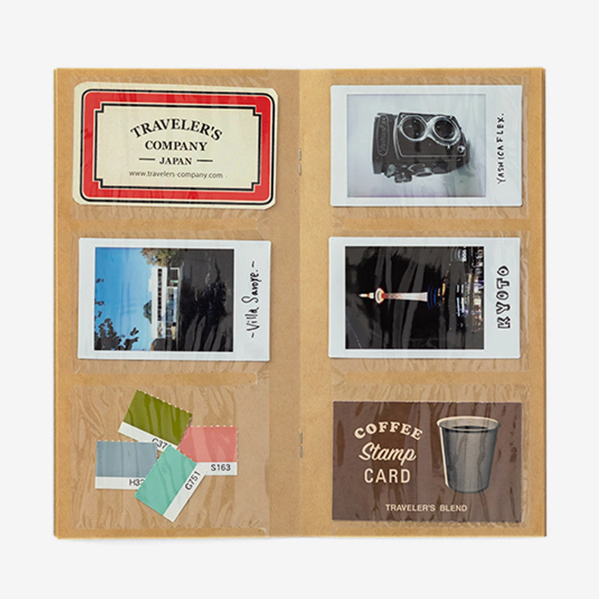 Das 028. Card File Refill besteht aus Kraftpapier mit 3 Einschubfächern aus Plastik pro Seite. Du kannst darin Visitenkarten sammeln, oder auch Deine Instax Mini Fotos!