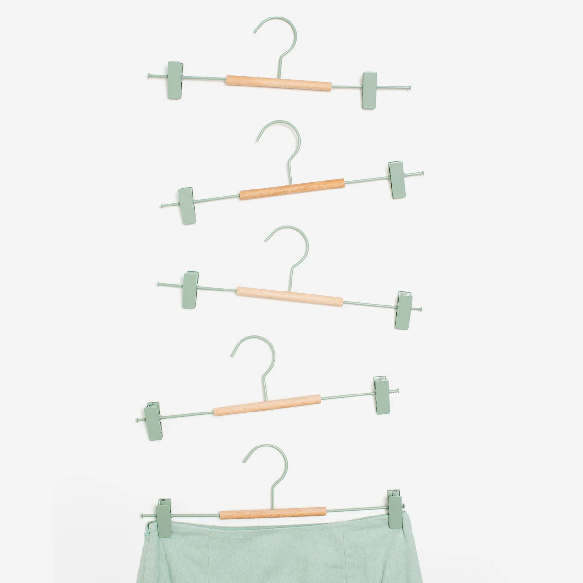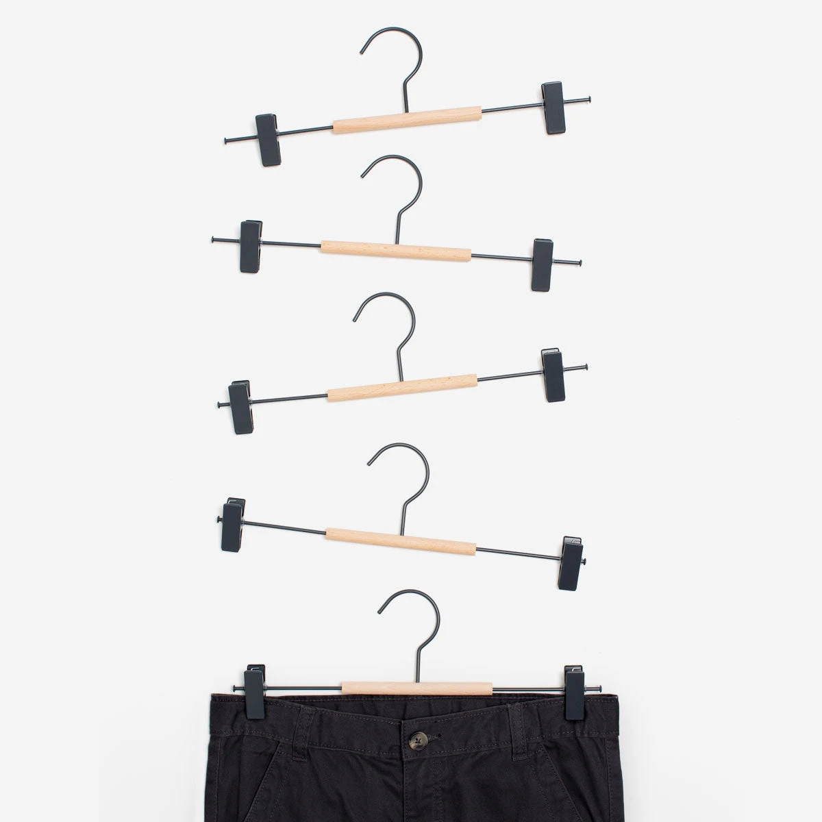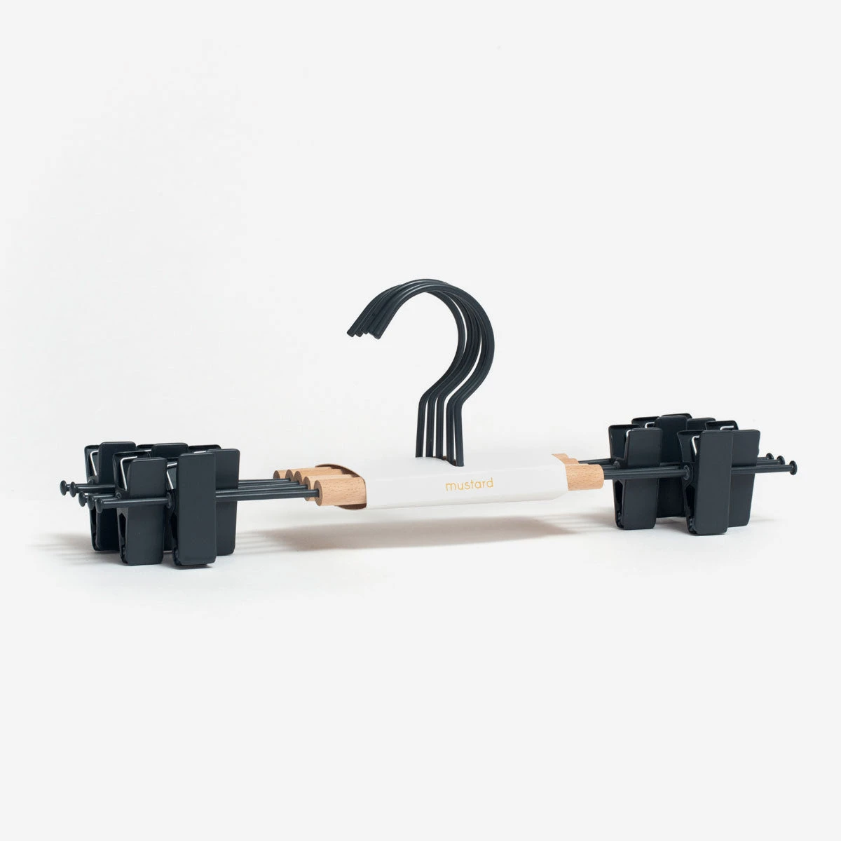 Richtig schöne Kleiderbügel! Diese tollen Clip-Kleiderbügel von mnustard haben eine glatte, matte Pulverbeschichtung, ein Holzdetail und zwei Clips, mit denen Du die Kleidung genau passend aufhängen kannst.