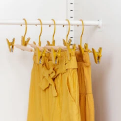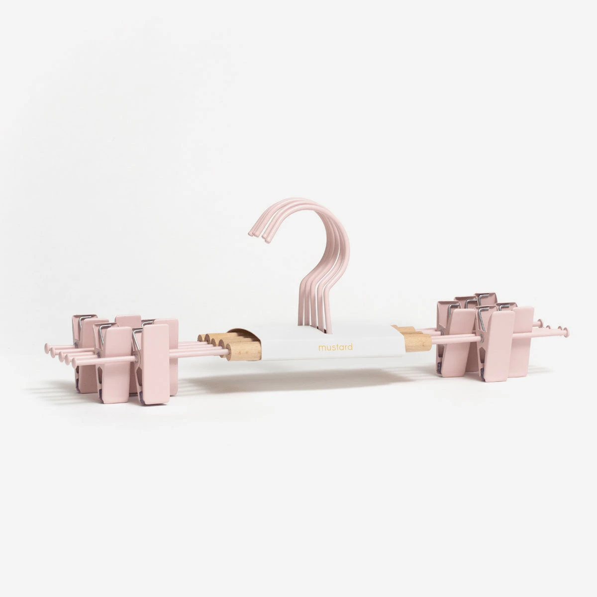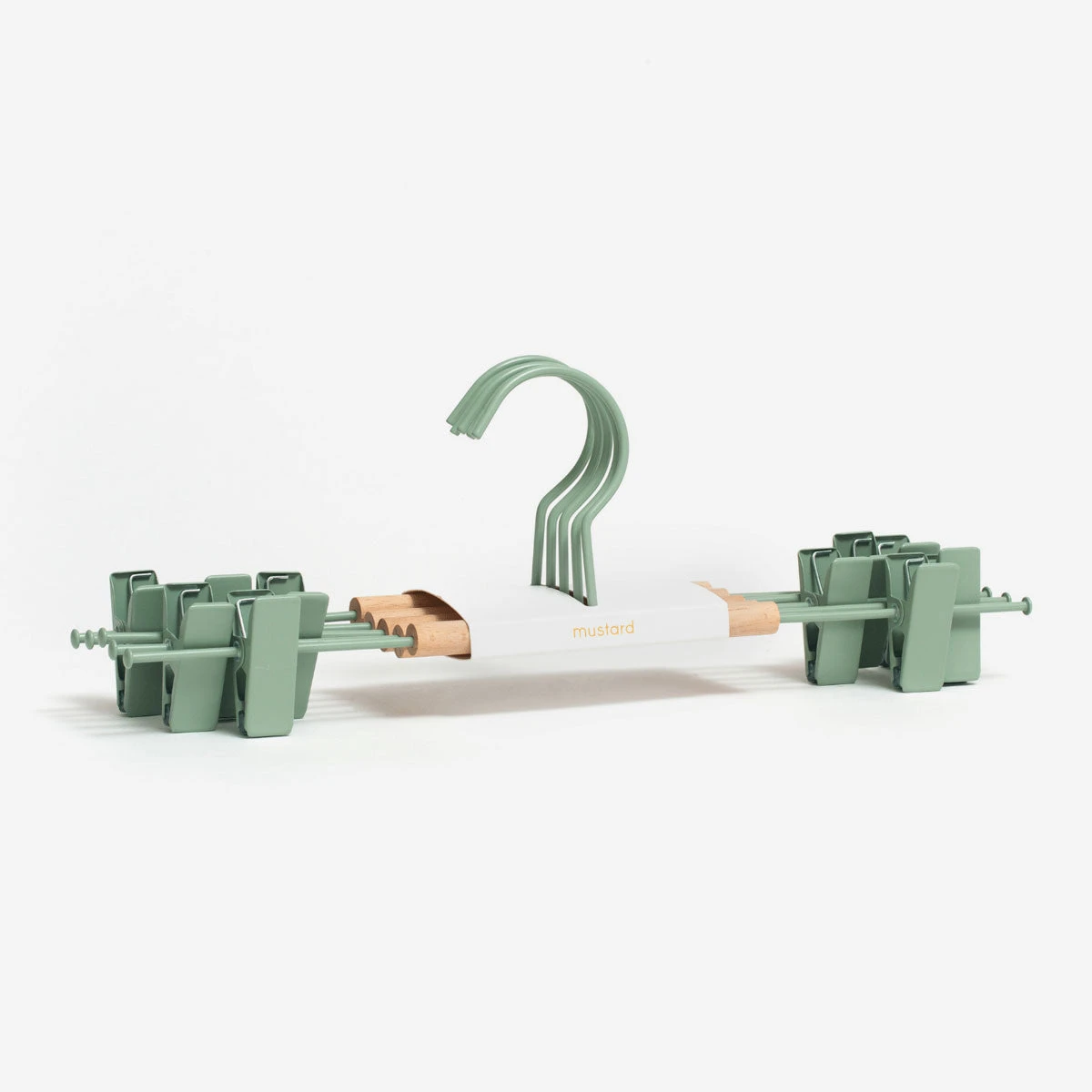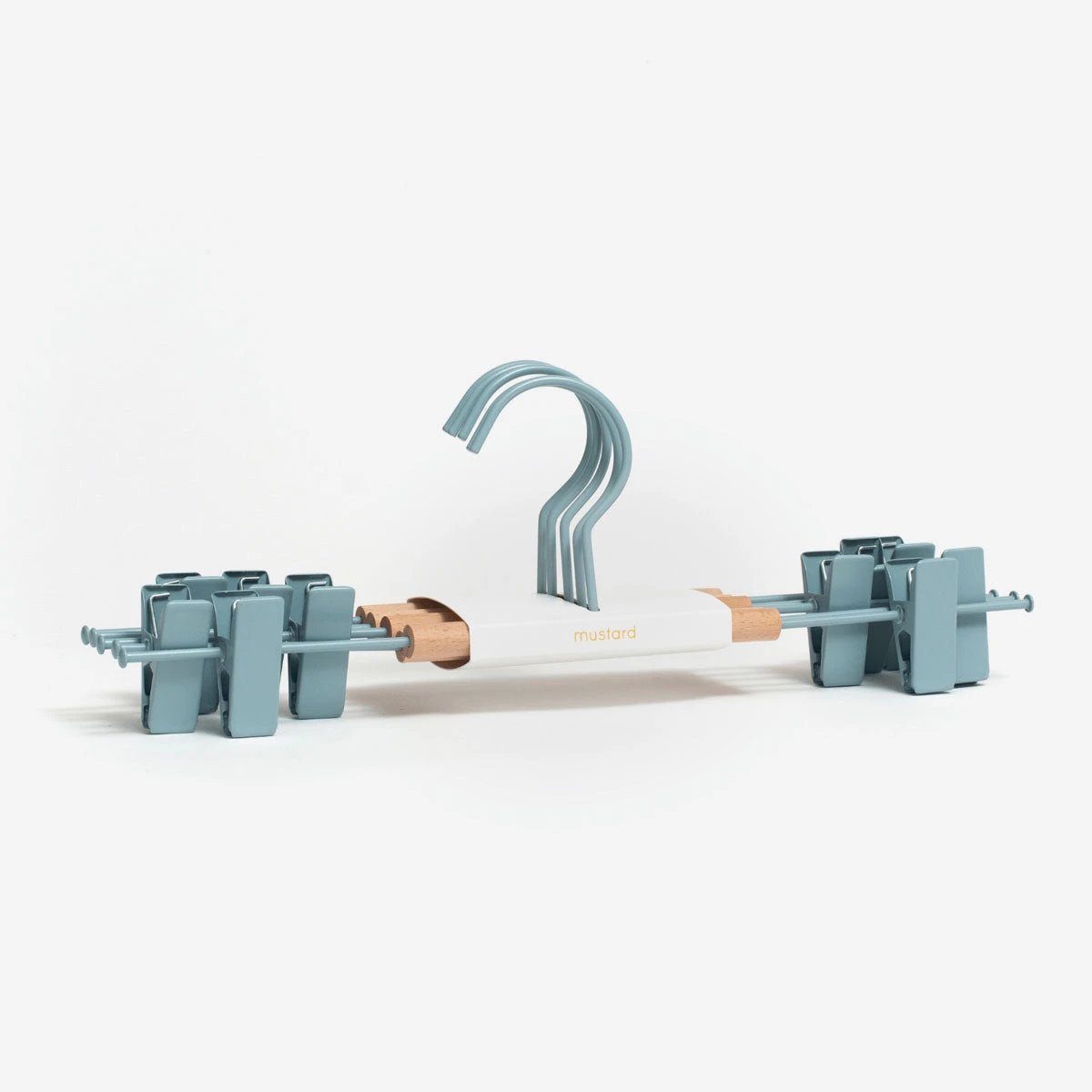 Richtig schöne Kleiderbügel! Diese tollen Clip-Kleiderbügel von mnustard haben eine glatte, matte Pulverbeschichtung, ein Holzdetail und zwei Clips, mit denen Du die Kleidung genau passend aufhängen kannst.