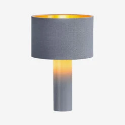 Die ALL ROUND Tischleuchte von VICTOR FOXTROT lebt von dem spannenden Kontrast der Oberflächen: Ton in Ton steht der mit grob strukturiertem Wollstoff bezogene Lampenschirm auf dem LeuchtenfuĂź aus pulverbeschichtetem Stahl, an dem das Licht weich hinunter flieĂźt. Die opake Goldbeschichtung im Inneren des Lampenschirms lässt das Licht unheimlich schön und warm streuen.Â