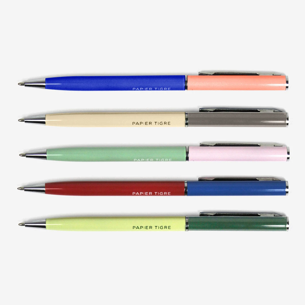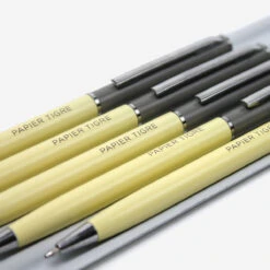 Schöner Kugelschreiber im Colourblock Design von Papier Tigre. Die Kugelschreiber sind mit einer schwarzen Mine mit 0,7 mm Stärke ausgestattet. Die Kugelschreiber sind ist nachfüllbar, die Minen sind bei uns erhältlich.