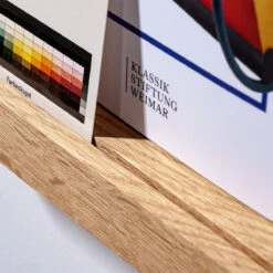 In der Bilderleiste ist der Länge nach ein Schlitz eingefräst, in dem Bilder, Postkarten und kleine Drucke ihren Platz finden. So wird die Bilderleiste Eiche 02 zur dekorativen und gleichermaßen praktischen Ablage in Wohnzimmer, Küche und allen anderen Wohnbereichen.