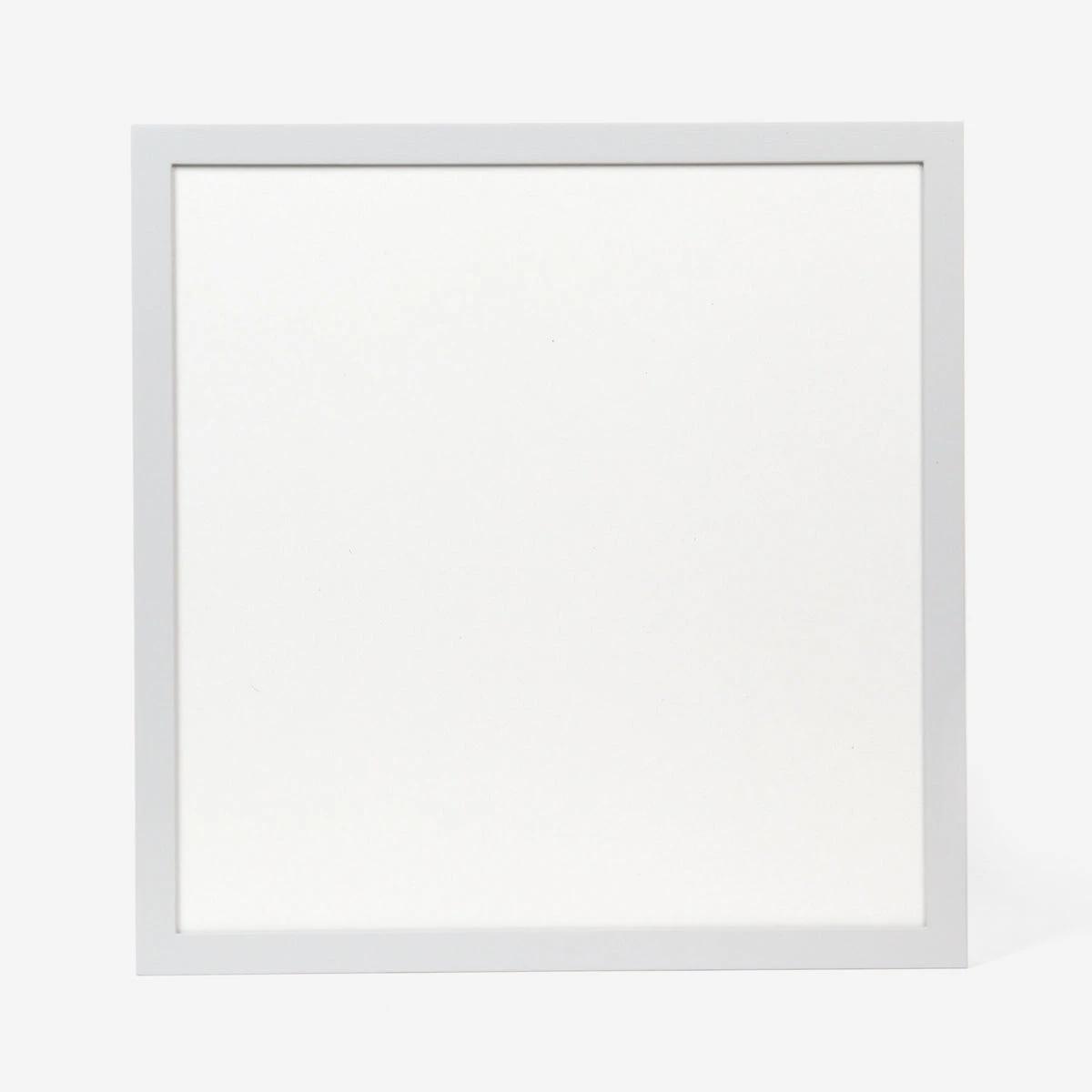 Lichtgrau lackierter Bilderrahmen aus Holz und mit echtem Glas, passend für das Bildformat 30 × 30 cm.