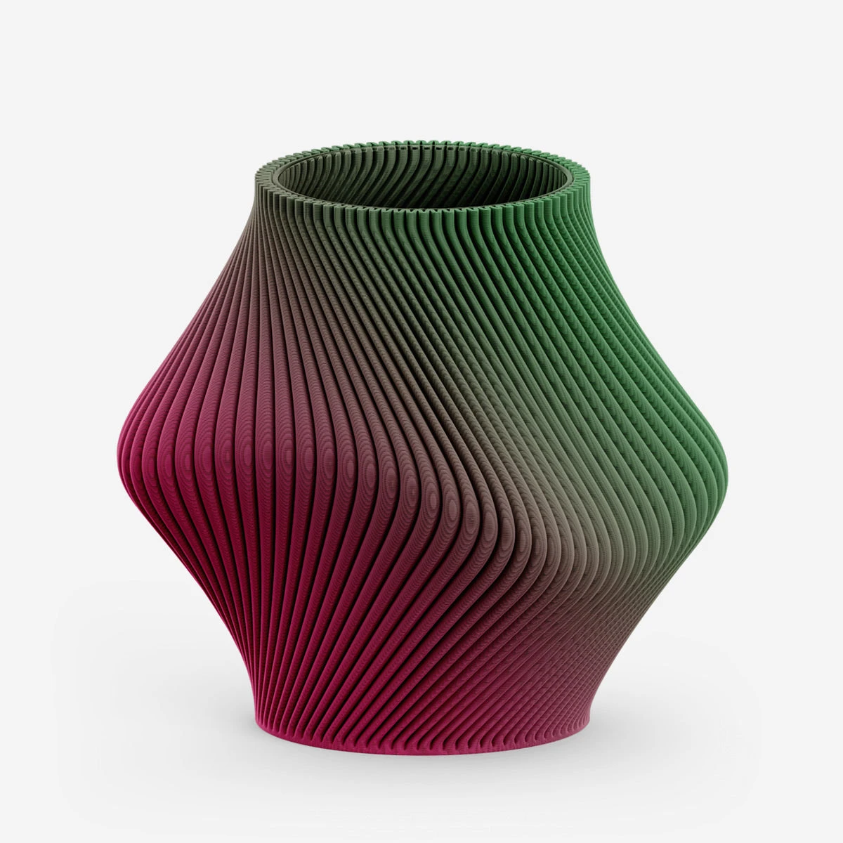 Die Bloz-Designfamilie hat eine asymmetrische und ein wenig klecksartige Form, die aus jedem Blickwinkel anders aussieht. Die Form ist ein schöner Hingucker, die feine Textur des Materials begeistert Augen und Hände. Und die Farbe: das Material schafft einen dramatischen Übergang von Rosa zu Grün. Diese Farbmorphose unterstreicht die Bewegung, die im Design der Bloz Vasen steckt, und erschafft einen fesselnden Eyecatcher für dein Zuhause.