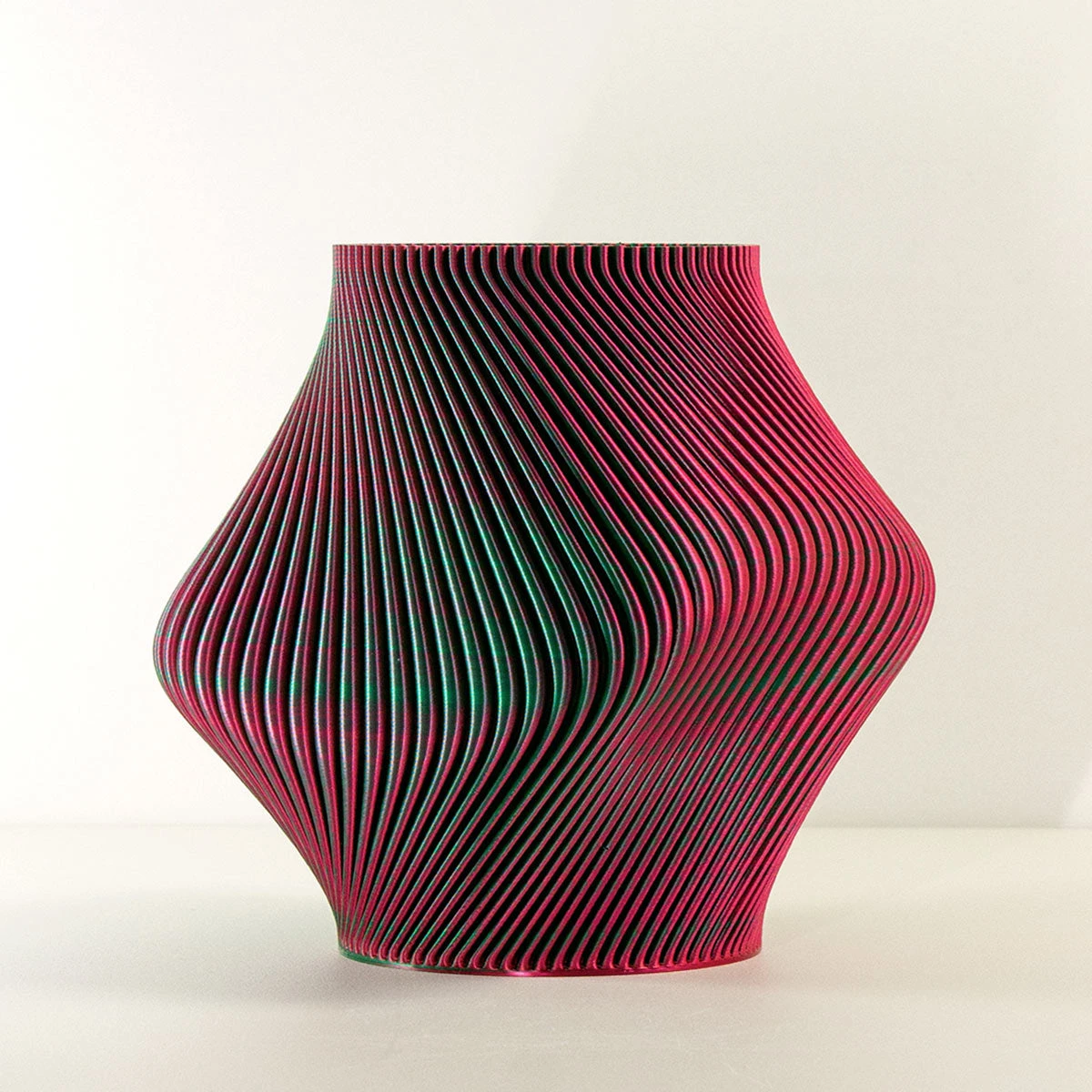 Jedes einzelne Stück von Sheyn. wird individuell angefertigt. Da für den 3D-Druck 50% recyceltes PLA verwendet wird, haben keine zwei Teile die exakt gleiche Farbe. Wir glauben, dass das wunderschön ist – und hoffen, dass du das auch so siehst!