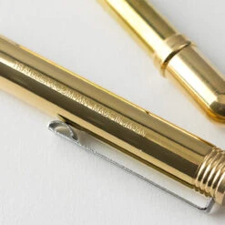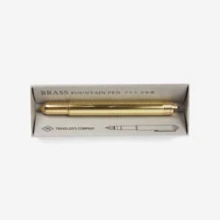 Die letzte und lang erwartete Ergänzung in Brass-Serie von TRAVELER’S Company ist der Füllfederhalter. Genau wie der Kugelschreiber und der Bleistift der Brass-Serie besteht auch der Füllfederhalter aus zwei kurzen Teilen, die man zum Schreiben aufeinander steckt. Der Füller aus Messing wird im Laufe der Zeit und mit dem Gebrauch immer schöner.
