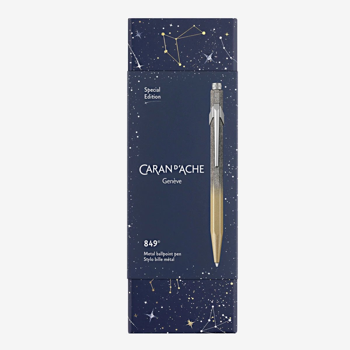 Der Kugelschreiber 849 mit seinen Mondreflexen und metallischen Farbtönen läd auf dieses Weltraumabenteuer ein.