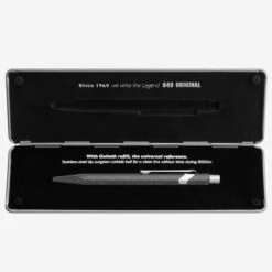 Dein schöner Begleiter: der Kugelschreiber 849 der Schweizer Traditionsmarke Caran d’Ache. Der Metallschaft des Kugelschreibers 849 ORIGINAL Silber unterliegt einem spezifischen Alterungsprozess, der ihm eine ursprüngliche, rohe Kraft verleiht – Retro-Look par excellence. Gefüllt mit einer Goliath-Mine schreibt er bis zu 600 Seiten durch. In seiner hochwertigen Verarbeitung und im schicken Slim Case macht er sich ganz wunderbar als Geschenk!