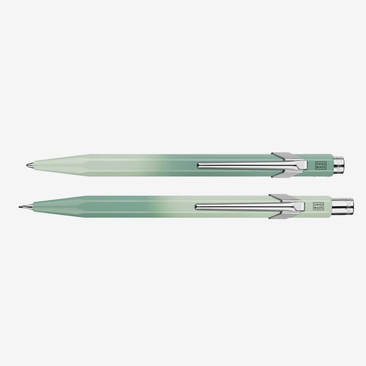 Das Misty Forest Set beinhaltet gleich zwei ikonische Modelle der Traditionsmarke Caran D’Ache: der Kugelschreiber 849 und der Minenhalter 844. Die Farbgestaltung dieser Edition ist inspiriert vom mystischen Charme nebelverhangener Wälder. Von Pastellgrün bis Salbeigrün fängt dieses Duo alle Nuancen der Ruhe des Waldes in der Morgendämmerung ein, wenn der Nebel durch die Blätter der Bäume zieht und eine stille, magische Atmosphäre schafft. Der harmonische Farbverlauf ist eine Hommage an die friedliche Schönheit der Natur, in der die Zeit stillzustehen scheint.