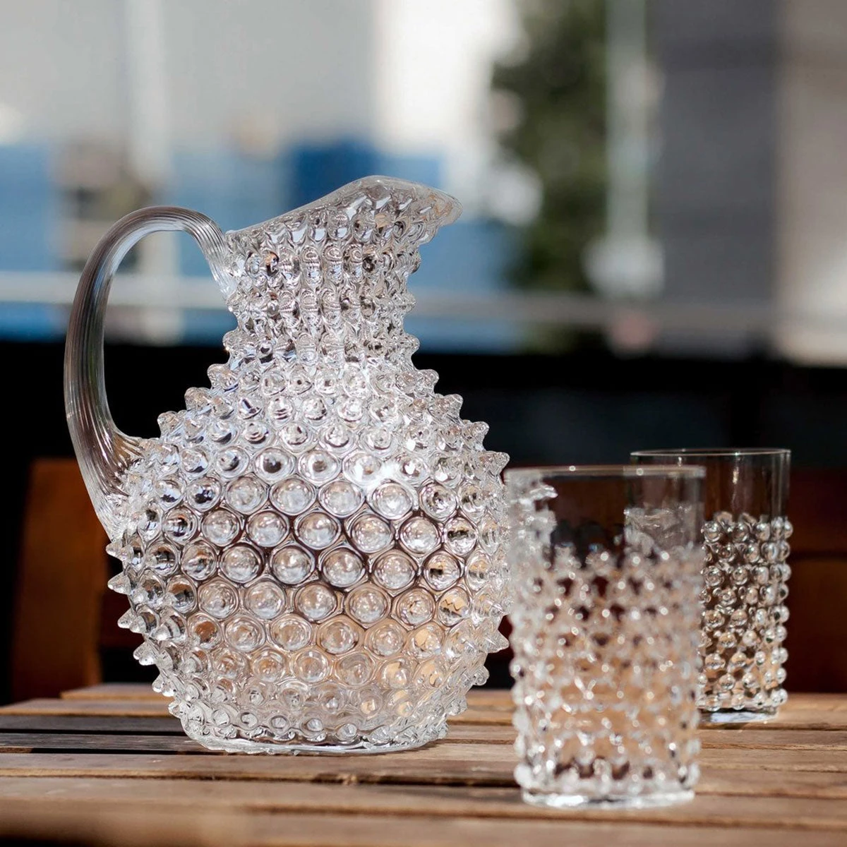 Wein, Limo, Sprudelwasser oder Fruchtbowle – in einem Hobnail Jug wird jedes Getränk zum Hingucker auf dem Tisch. Die moderne Herangehensweise an die böhmische Glastradition kombiniert mit der Eleganz des Kristallglases lässt dein Interieur strahlen.