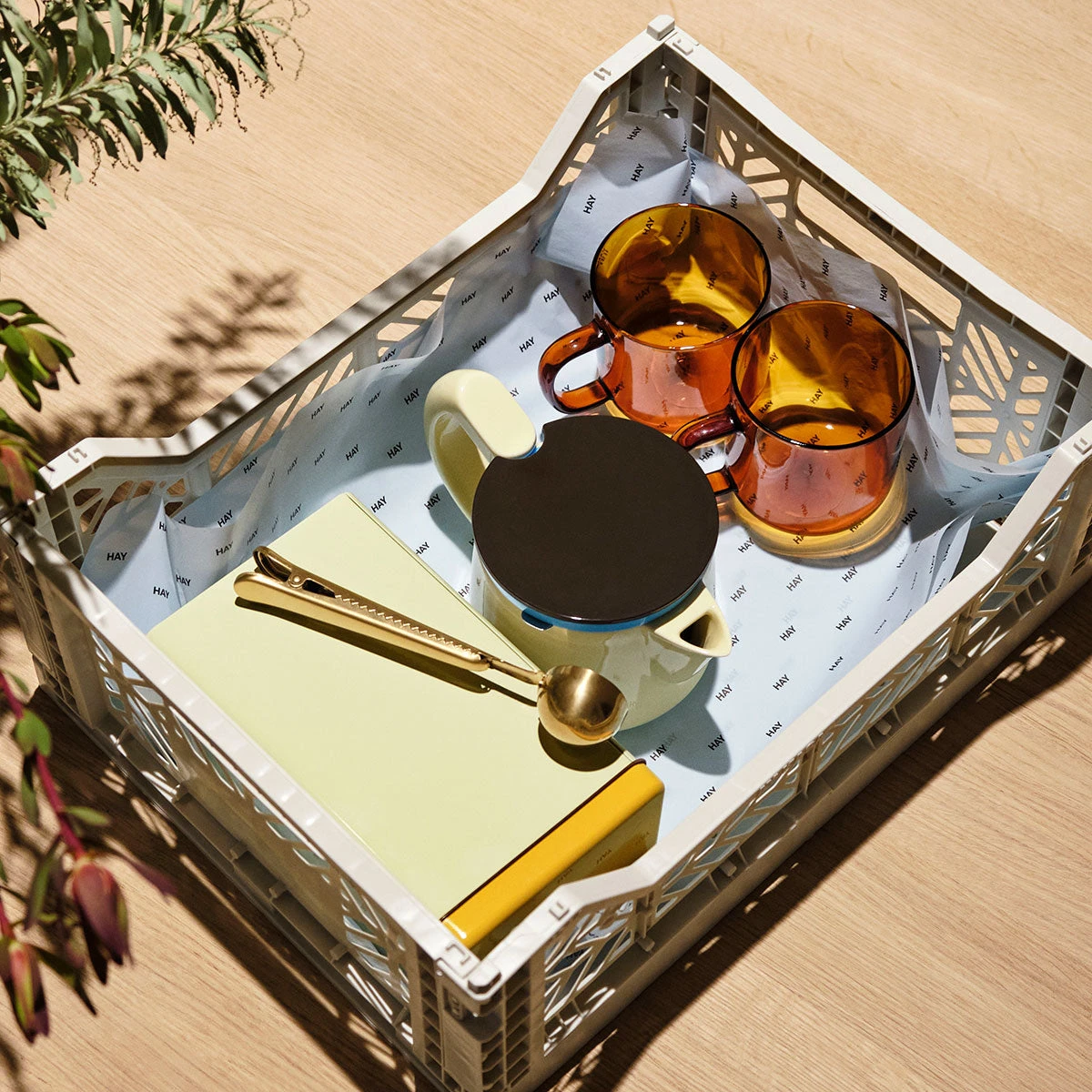 Es gibt die Crates in verschiedenen Größen und in einer Vielzahl von bunten Tönen, die sich zu wunderschönen Farbpaletten kombinieren lassen. Alle Klappboxen (auch unterschiedlicher Marken) sind stapelbar.