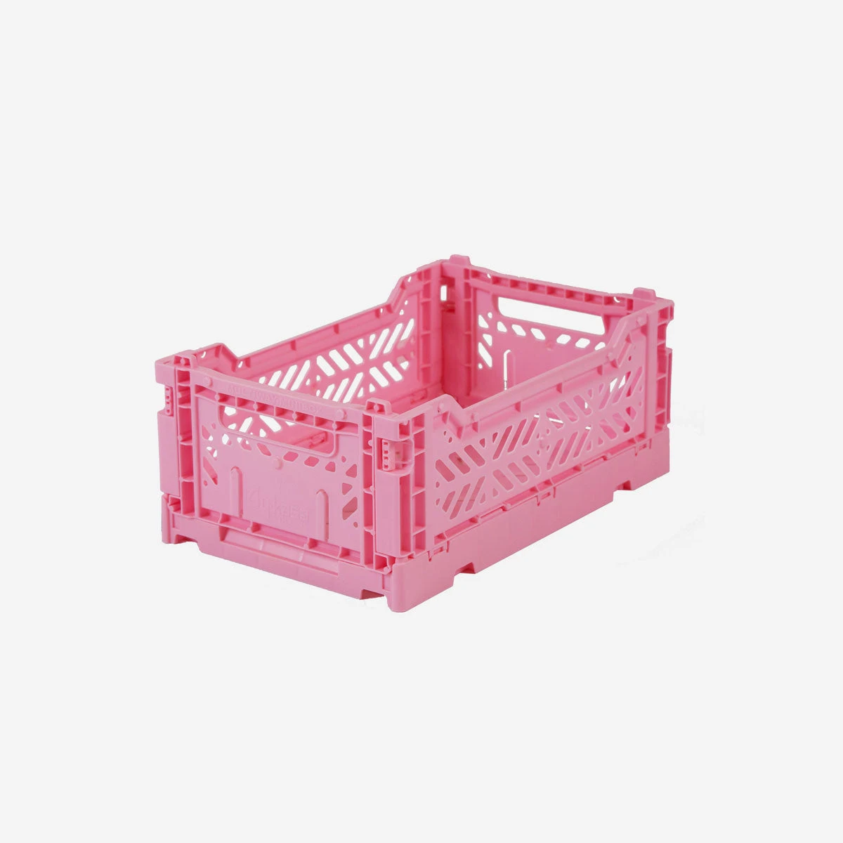 Es gibt die Crates in verschiedenen Größen und in einer Vielzahl von bunten Tönen, die sich zu wunderschönen Farbpaletten kombinieren lassen. Alle Klappboxen (auch unterschiedlicher Marken) sind stapelbar.