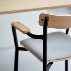Der Stuhl ÉTUDE von Tiptoe ist eine gelungene Neuinterpretation eines klassischen Designs. Mit seiner klaren Linienführung und durchdachten Details vereint er Ästhetik und Komfort auf eine subtile Weise. Das Gestell aus pulverbeschichtetem Stahl und die Holzfläche aus natürlicher Eiche oder gebeizter Buche bilden einen harmonischen Kontrast, der sich sowohl in modernen als auch in klassischen Interieurs gut macht.