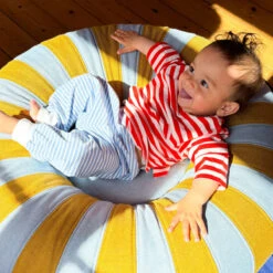 Der abnehmbare Bezug ist maschinenwaschbar und somit pflegeleicht, falls mal etwas daneben geht. Und noch ein kleiner Hinweis: Der Kern aus Gummi braucht am Anfang etwas Zeit zum „Auslüften“, aber das verfliegt schnell. FLOAT ist für drinnen und draußen geeignet – im Außenbereich aber lieber nicht länger der Witterung aussetzen.