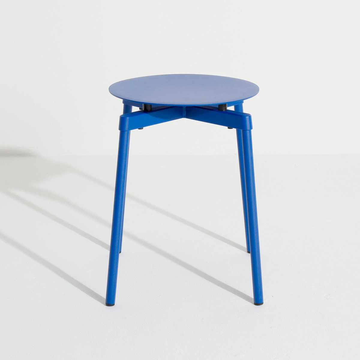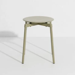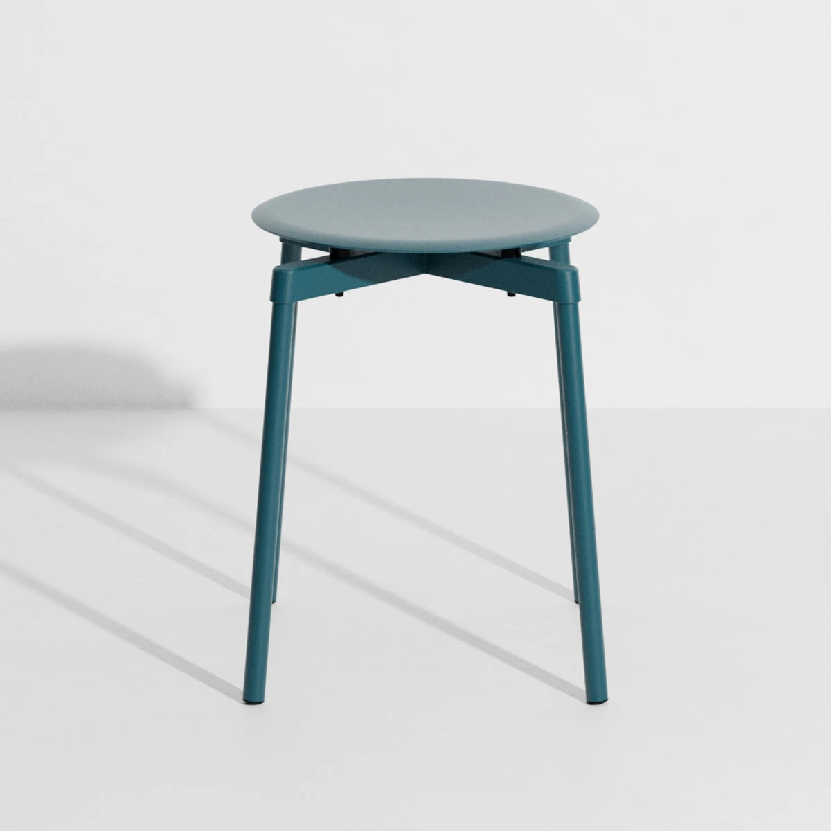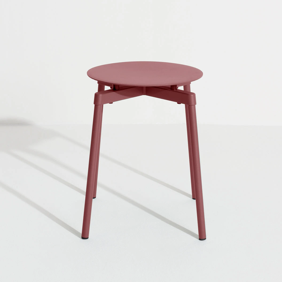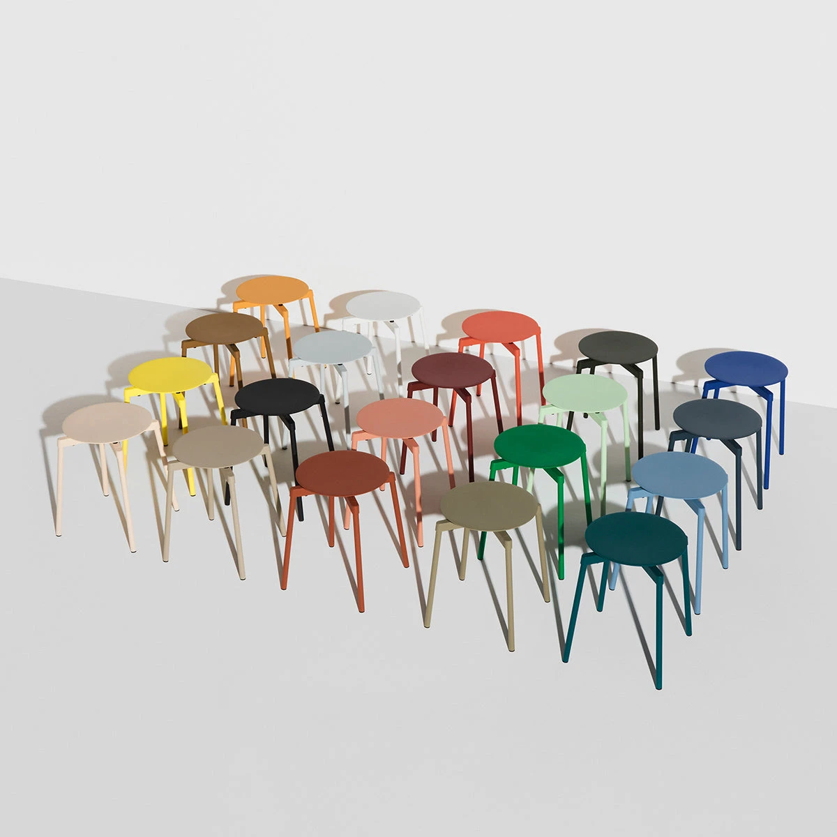 Der langlebige und leichte Aluminium-Hocker bietet dank der Stoßdämpfer unter der Sitzfläche optimalen Komfort. Die wasser- und UV-beständige, genarbte, matte Pulverbeschichtung sorgt für optimale Haltbarkeit und den Einsatz im Innen- und Außenbereich. Die Hocker sind bis zu sechs Stück stapelbar und harmonieren perfekt mit dem passenden Tisch aus der Kollektion..
