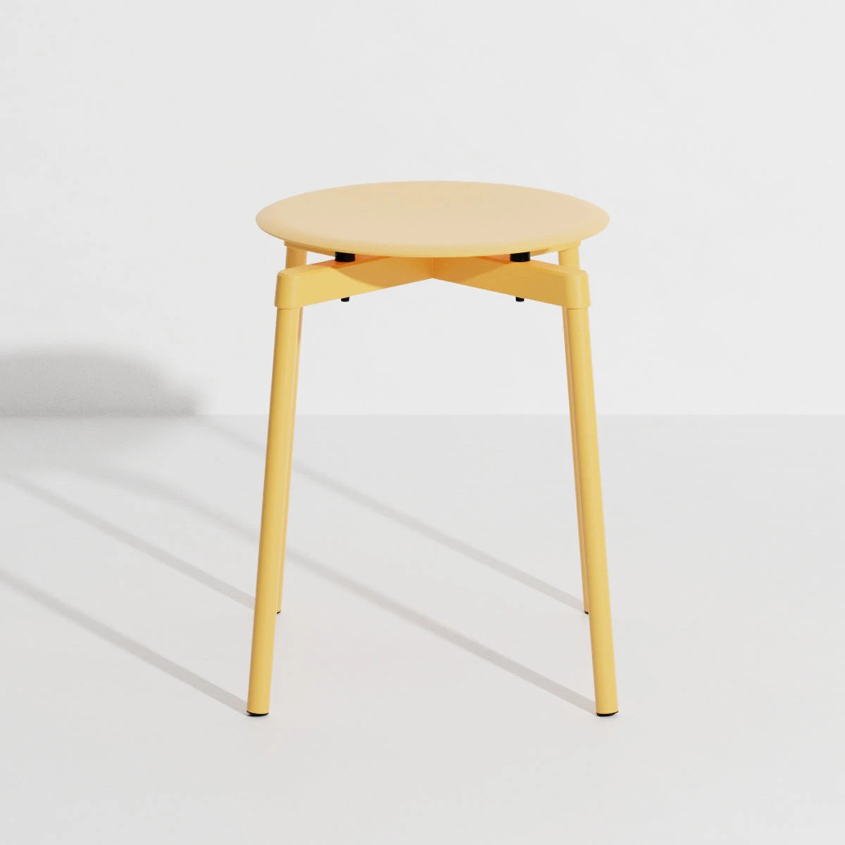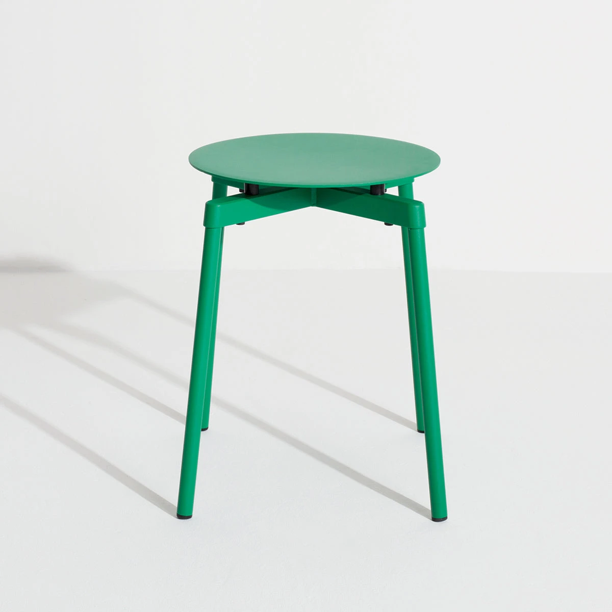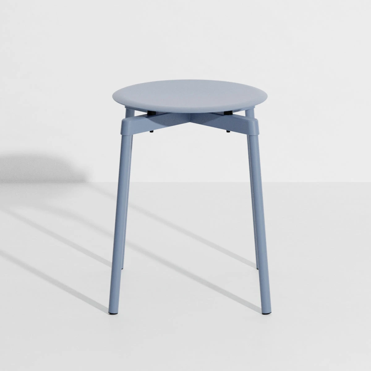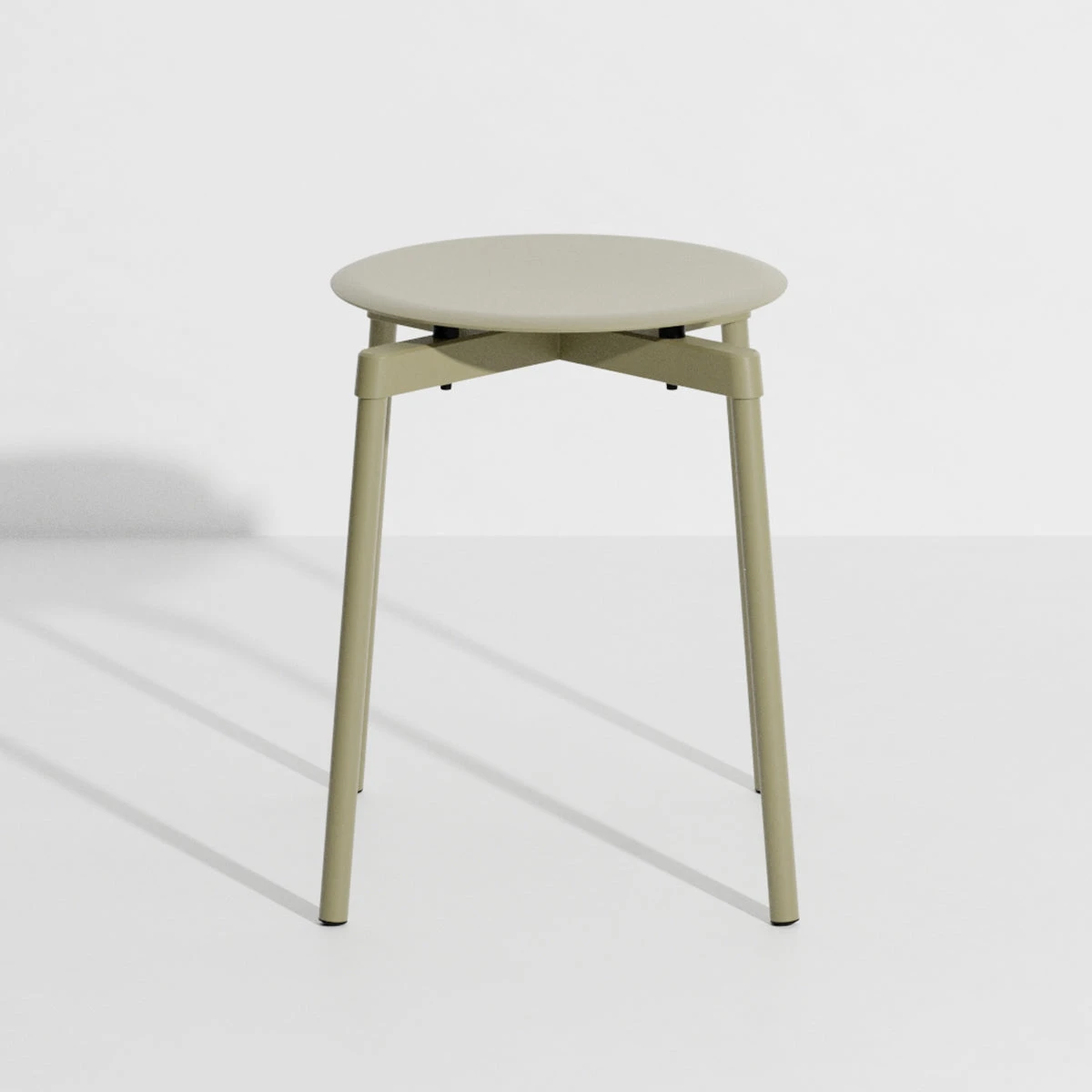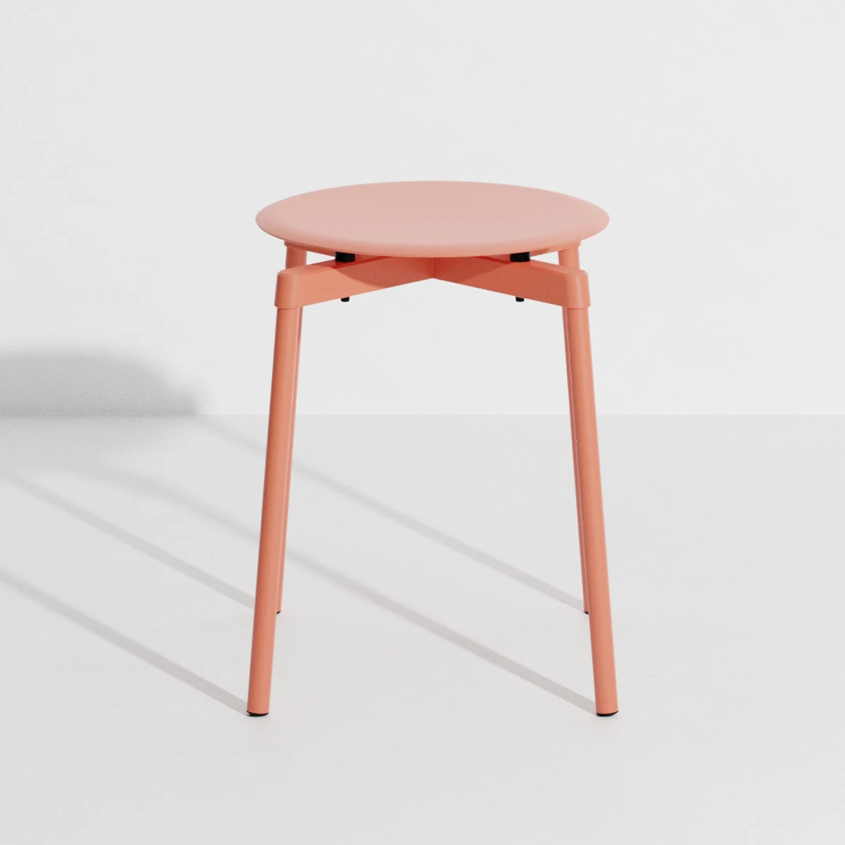 Der langlebige und leichte Aluminium-Hocker bietet dank der Stoßdämpfer unter der Sitzfläche optimalen Komfort. Die wasser- und UV-beständige, genarbte, matte Pulverbeschichtung sorgt für optimale Haltbarkeit und den Einsatz im Innen- und Außenbereich. Die Hocker sind bis zu sechs Stück stapelbar und harmonieren perfekt mit dem passenden Tisch aus der Kollektion..
