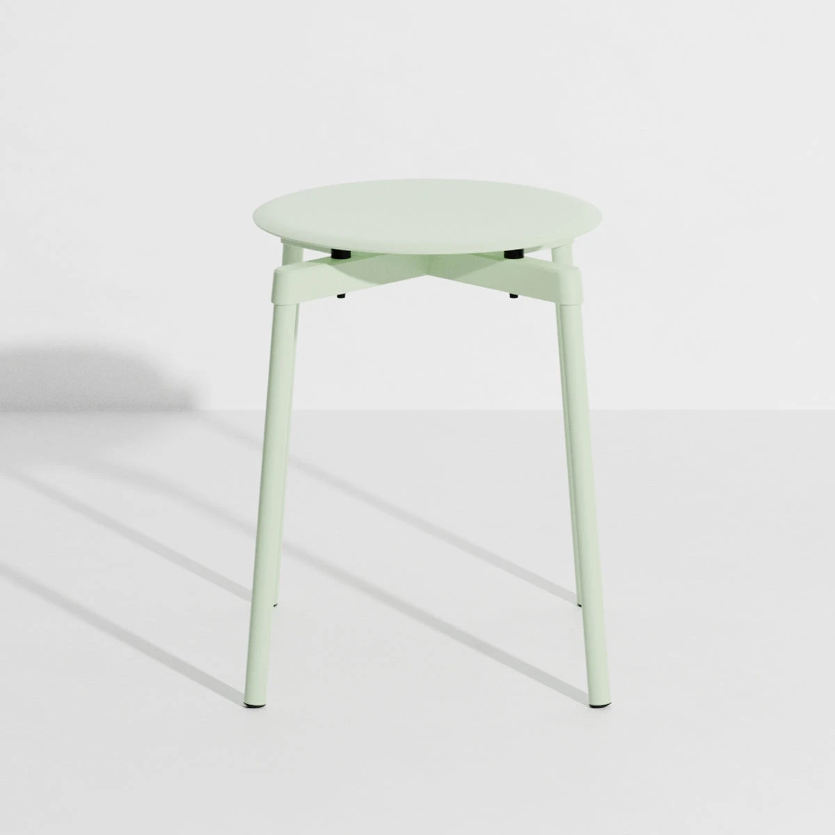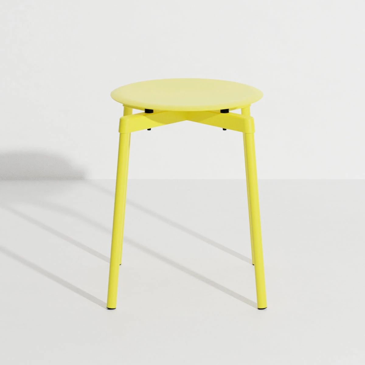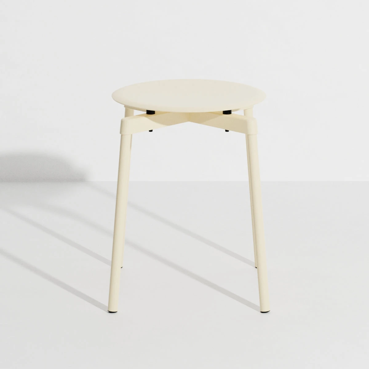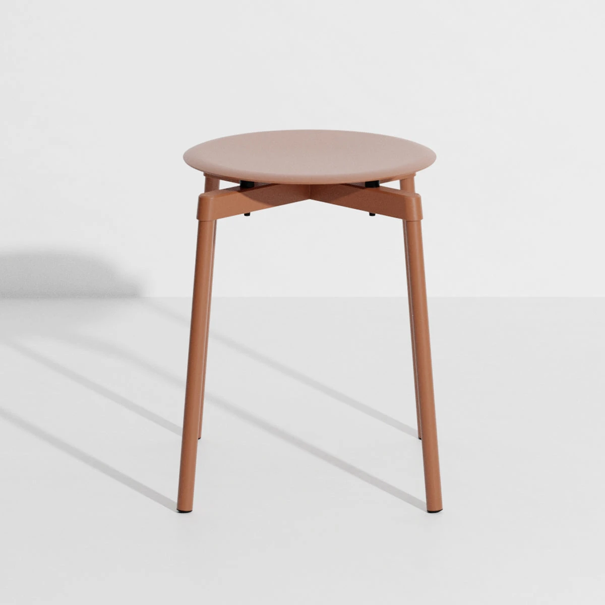 Der langlebige und leichte Aluminium-Hocker bietet dank der Stoßdämpfer unter der Sitzfläche optimalen Komfort. Die wasser- und UV-beständige, genarbte, matte Pulverbeschichtung sorgt für optimale Haltbarkeit und den Einsatz im Innen- und Außenbereich. Die Hocker sind bis zu sechs Stück stapelbar und harmonieren perfekt mit dem passenden Tisch aus der Kollektion..