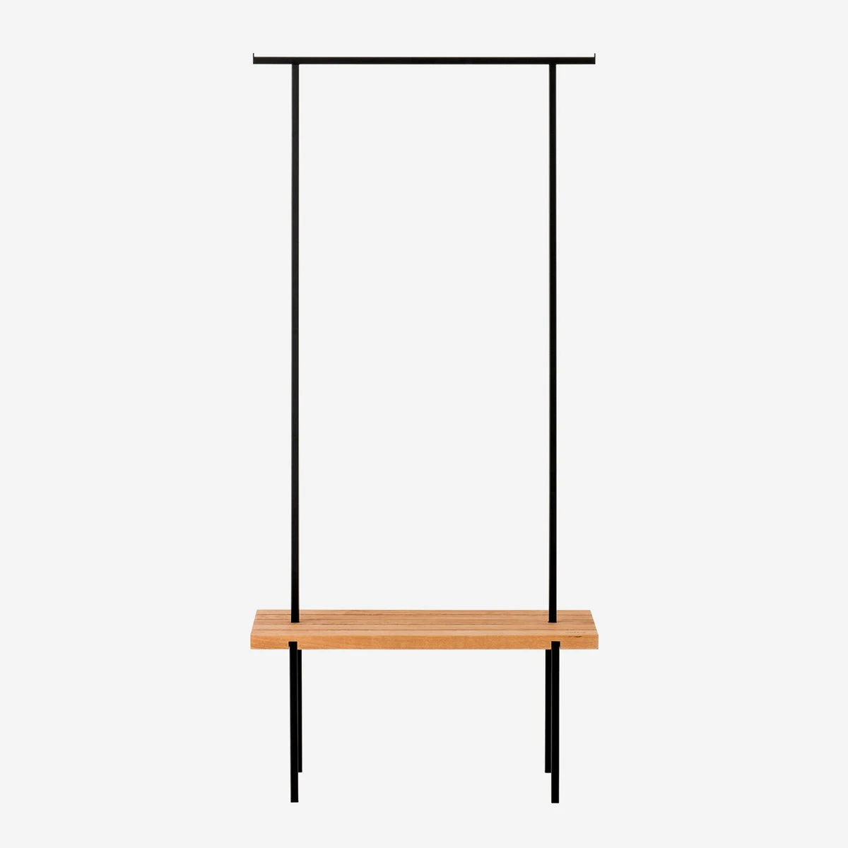 Die Garderobe mit Sitzfläche aus massiver Eiche ist ein Akzent und Ordnungshelfer im Flur, im Ankleidezimmer oder im Schlafzimmer. Setz Dich zum Schuhe-Zubinden hin, oder stell Deine Tasche darauf ab. Genug Platz zum Aufhängen Deiner Jacken und die der Gäste bietet die geschweisste Kleiderstange.
