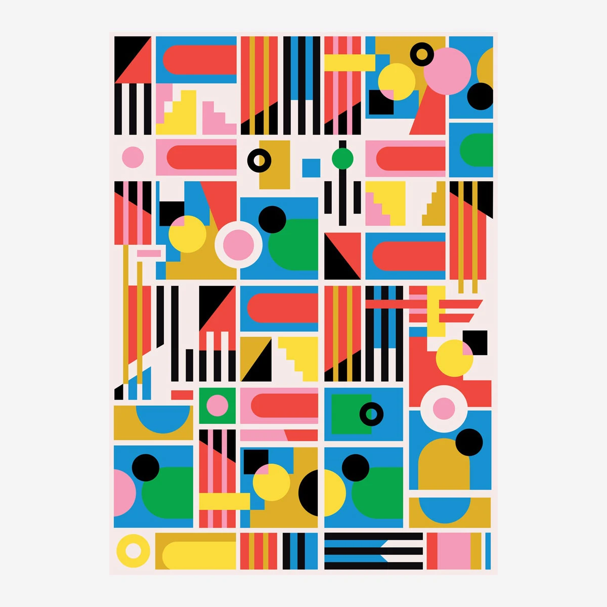 Ein fröhlich bunter Bogen Geschenkpapier von Kelly Hyatt.