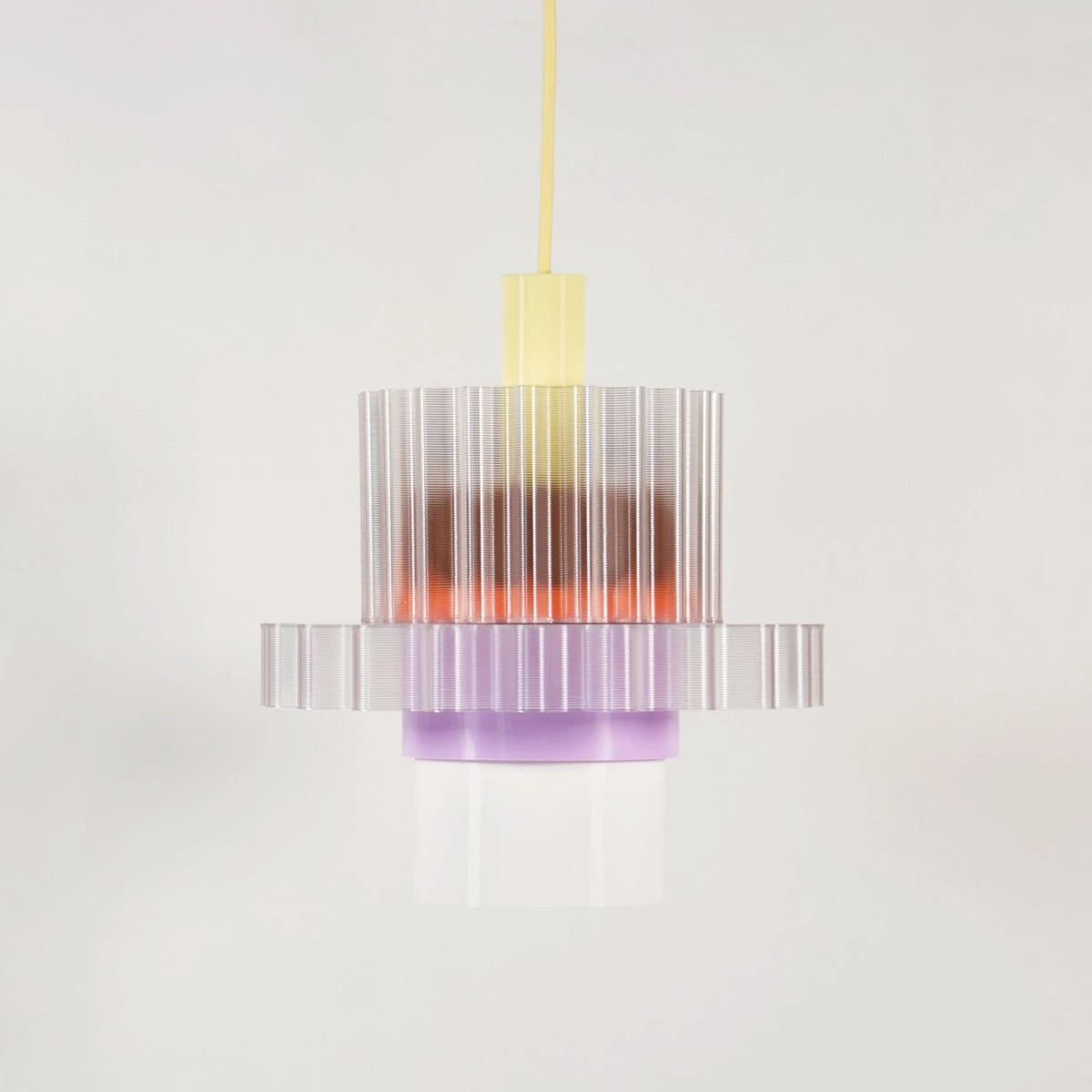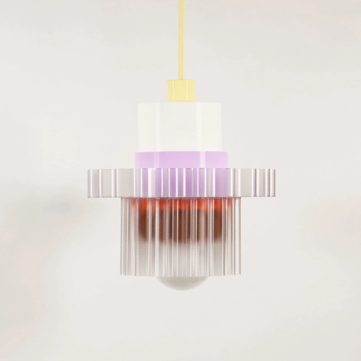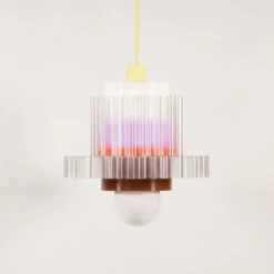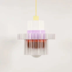 Die Leuchten-Kollektion Gigi der französischen Designer warren + laetitia besteht aus einer Reihe farbenfroher modularer Pendelleuchten. Die Gigi Lamp XL wird aus sechs austauschbaren Teilen beliebig in die endgültige Form zusammengesetzt.