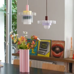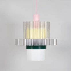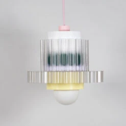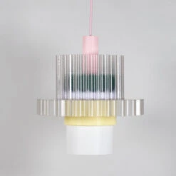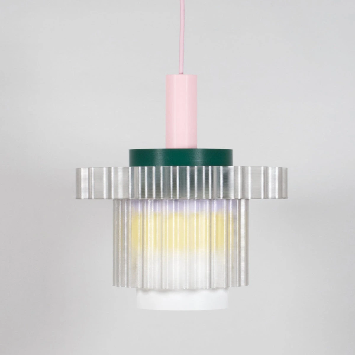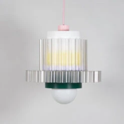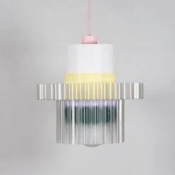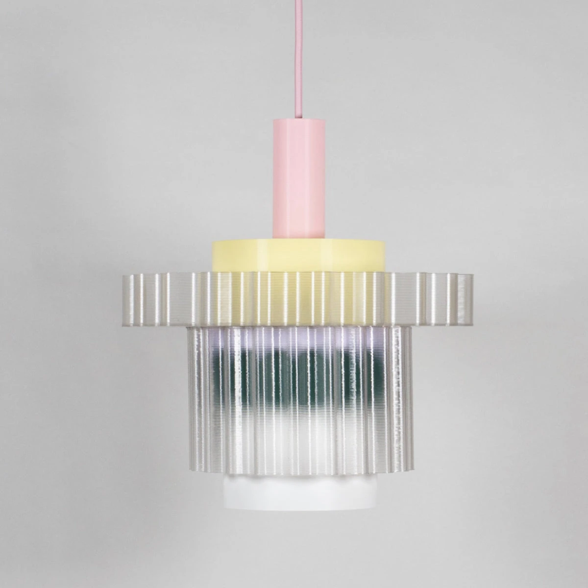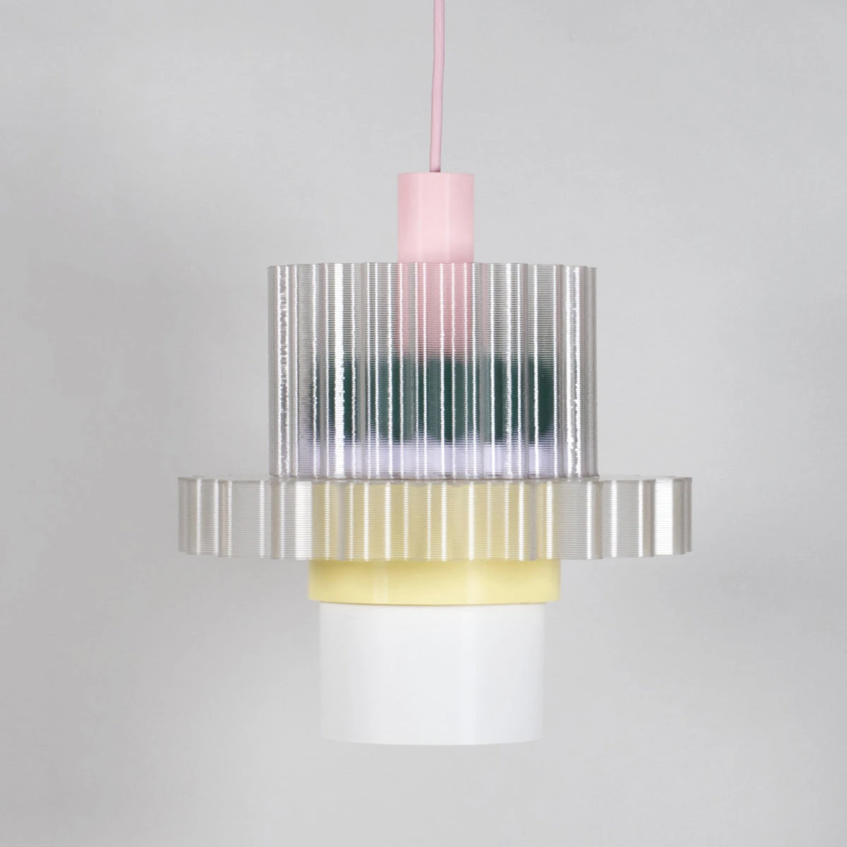 Die Leuchten-Kollektion Gigi der französischen Designer warren + laetitia besteht aus einer Reihe farbenfroher modularer Pendelleuchten. Die Gigi Lamp XL wird aus sechs austauschbaren Teilen beliebig in die endgültige Form zusammengesetzt.