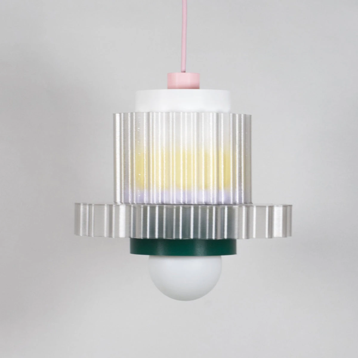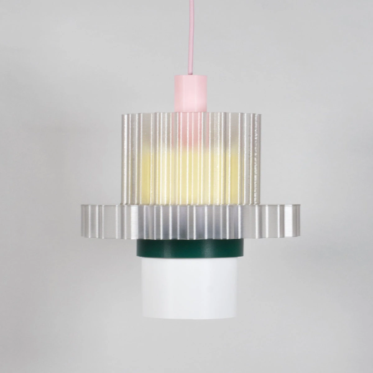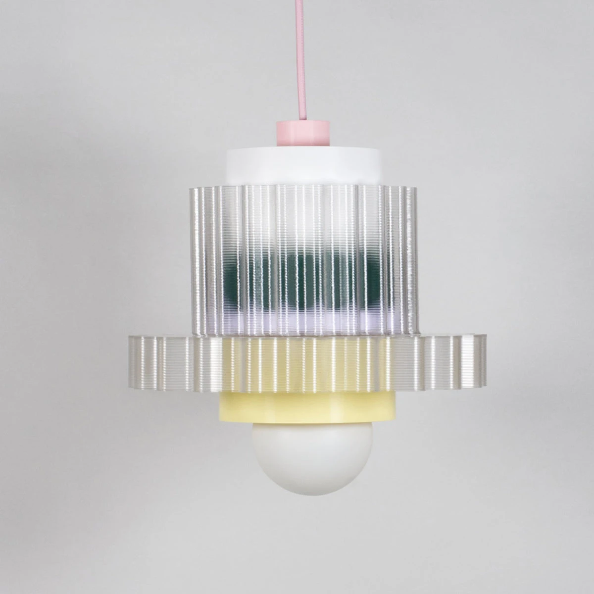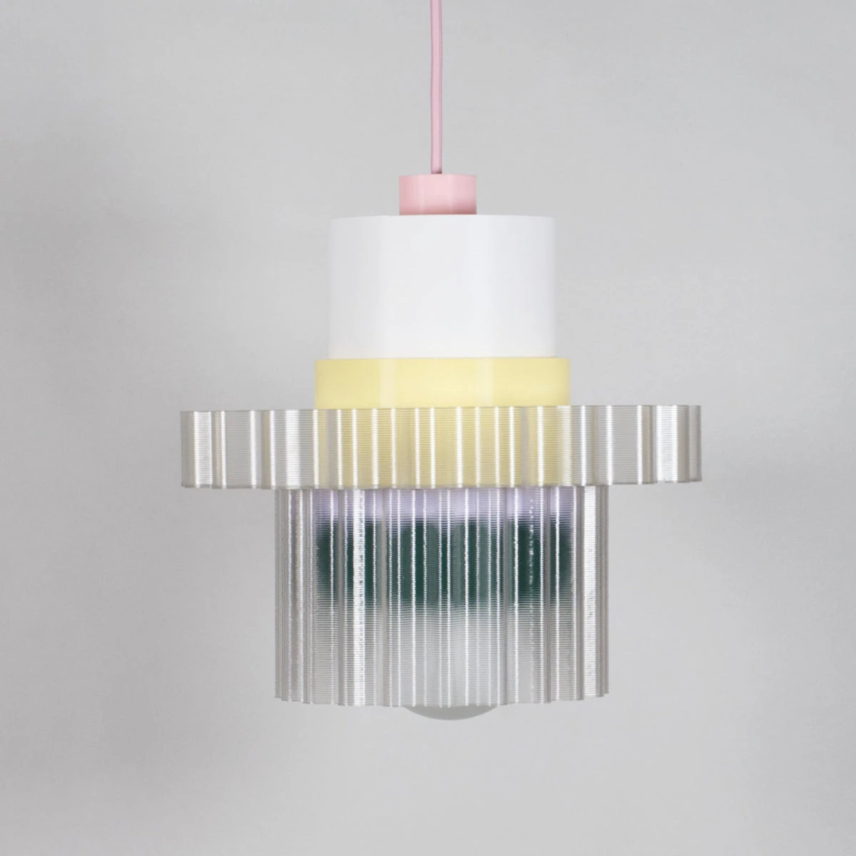 Die Gigi Leuchten werden im 3D-Druckverfahren im Pariser Studio aus recycelten und wiederverwertbaren Plastikflaschen sowie industriell kompostierbarem Biokunststoff aus Maisstärke (rPETG + PLA) hergestellt.