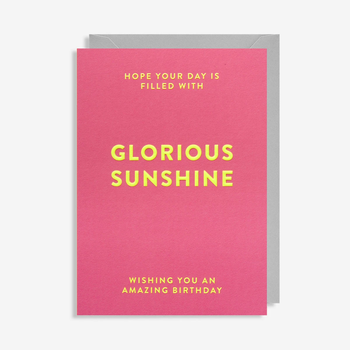 Hipp Hipp Hurra (und Glorious Sunshine!); es ist Zeit für eine Geburtstagskarte! Innen blanko für Deine eigenen lustigen, aufrichtigen, frechen, herzlichen Nachrichten an das Geburtstagskind.