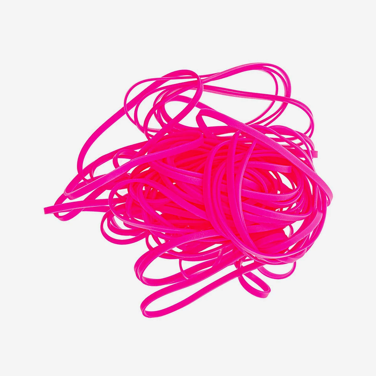 Niemand sagt, dass Gummibänder langweilig sein müssen. Hier ist eine Packung fröhliche Neongummis in Pink für Schule, Büro, Haushalt und mehr.