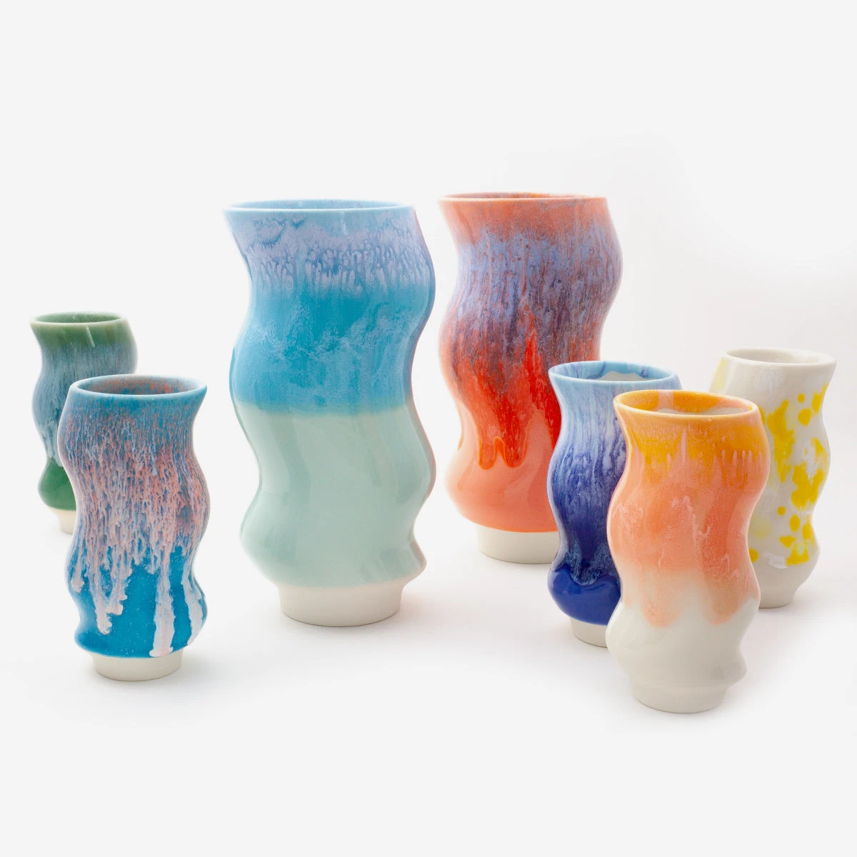 Die Hana Kollektion von Studio Arhoj vereint Design und handwerkliche Kunstfertigkeit in einer Serie von Porzellanvasen, die jede für sich ein kleines Kunstwerk ist. Jede Vase wird von Hand geformt und glasiert, wobei verschiedene Glasuren und Formen zur Auswahl stehen – von der geschwungenen Wave über die rundliche Plum hin zu Kiku, die nach aufeinander gestapelten Ringen aussieht.