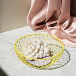 Die minimalistischen Iris Wire Baskets sind aus einem feinen Muster aus Stahldraht geformt und verleihen jedem Interieur eine angenehme, fröhliche Qualität. Einzelne Drähte sind geometrisch in einem Kreis angeordnet und werfen gemeinsam einen einzigartigen Schatten auf ihre Umgebung.