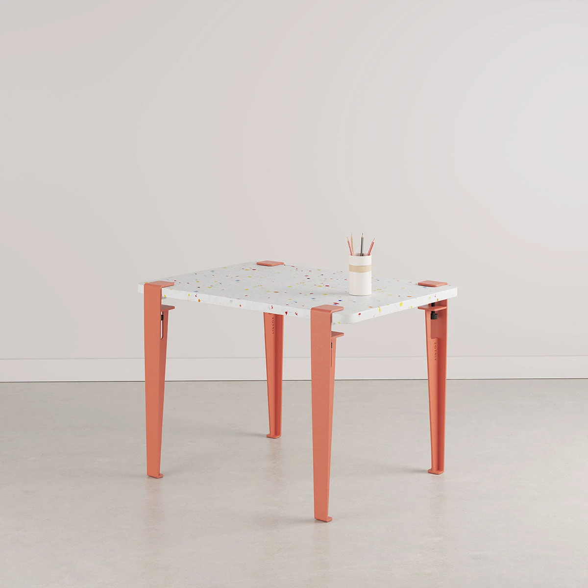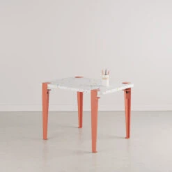 Wie alle TIPTOE Möbel ist auch dieser kleine Tisch in kürzester Zeit aufgebaut. Alle TIPTOE Produkte werden komplett in Europa gefertigt, mit Fokus auf beständigen, nachhaltigen Materialien. Bei Holztischplatten stammt das Eco-zertifizierte Holz aus nachhaltiger Forstwirtschaft. Die Tischbeine sind aus Stahl – ein sehr langlebiges und gut recyclebares Material.