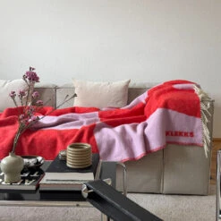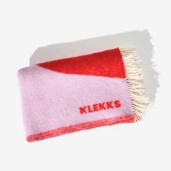 Für gemütliche Stunden zuhause: mit der Klekks No. 23 Lila-Rot Wolldecke wird dir warm ums Herz und bunt im Wohnzimmer.
