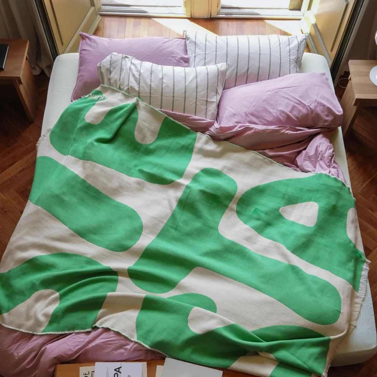 It’s siesta time. In frischem KLEKKS-Grün und mit dem großen „Siesta“-Schriftzug fällt die Decke sofort ins Auge. Sie ist leicht, weich und anschmiegsam – perfekt zum Chillen auf Sofa, Bett oder am Strand.