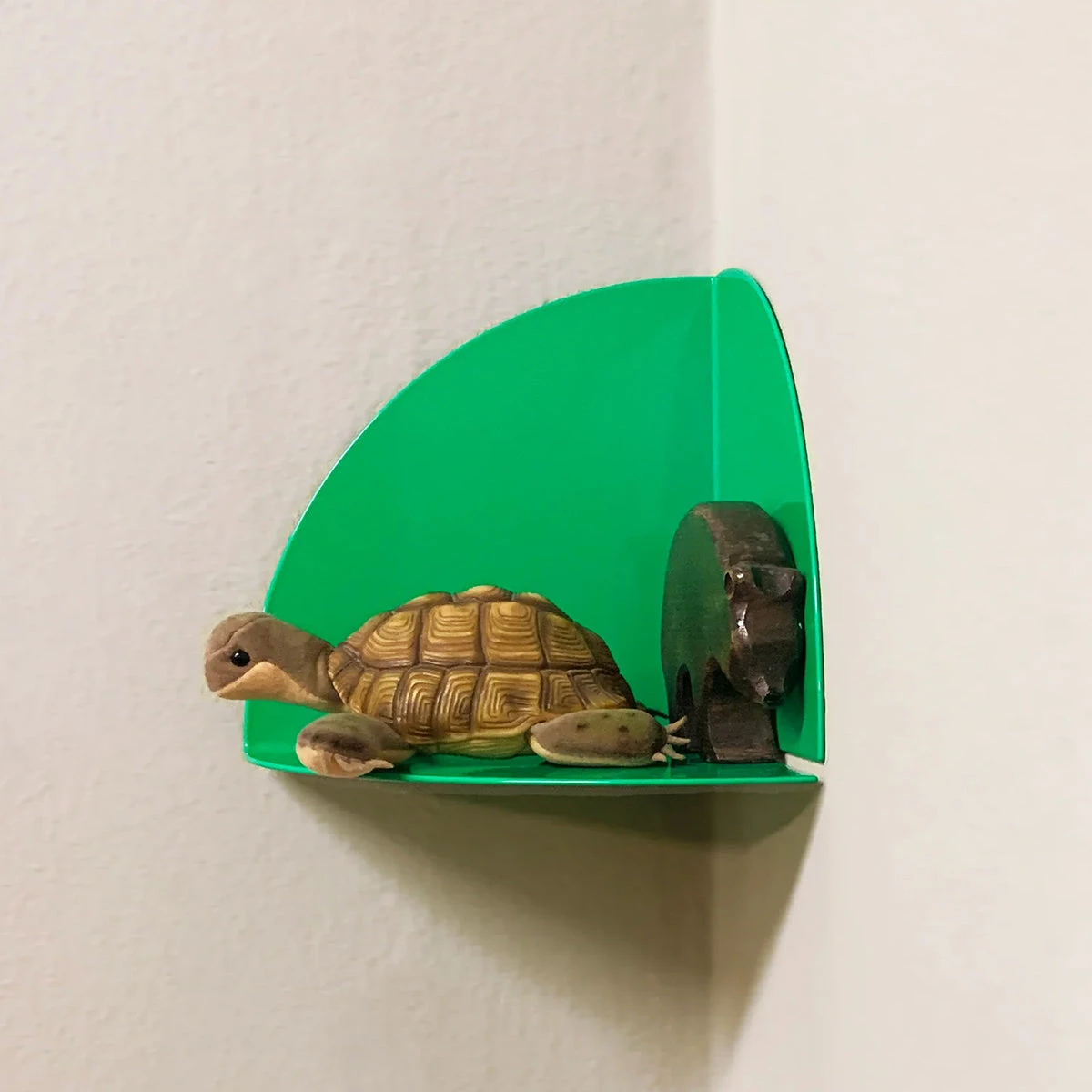 Verwandel eine ungenutzte Ecke in eine kleine Galerie mit dem markanten Eckregal Corner Shelf aus gebogenem Stahl von kolor.