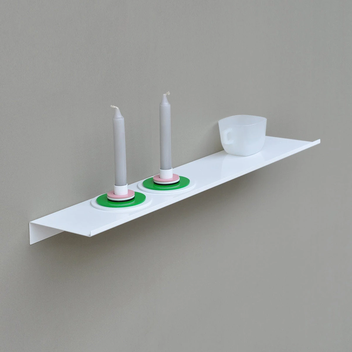 Das zweifach gekantete Z-Shelf ist ein filigraner, aber augenfälliger Hingucker an der Wand. Für eine kleine Deko im Flur, für die Gewürze in der Küche, oder die kleinen Dies und Das im Badezimmer – immer nützlich und eine Extra-Linie Farbe.