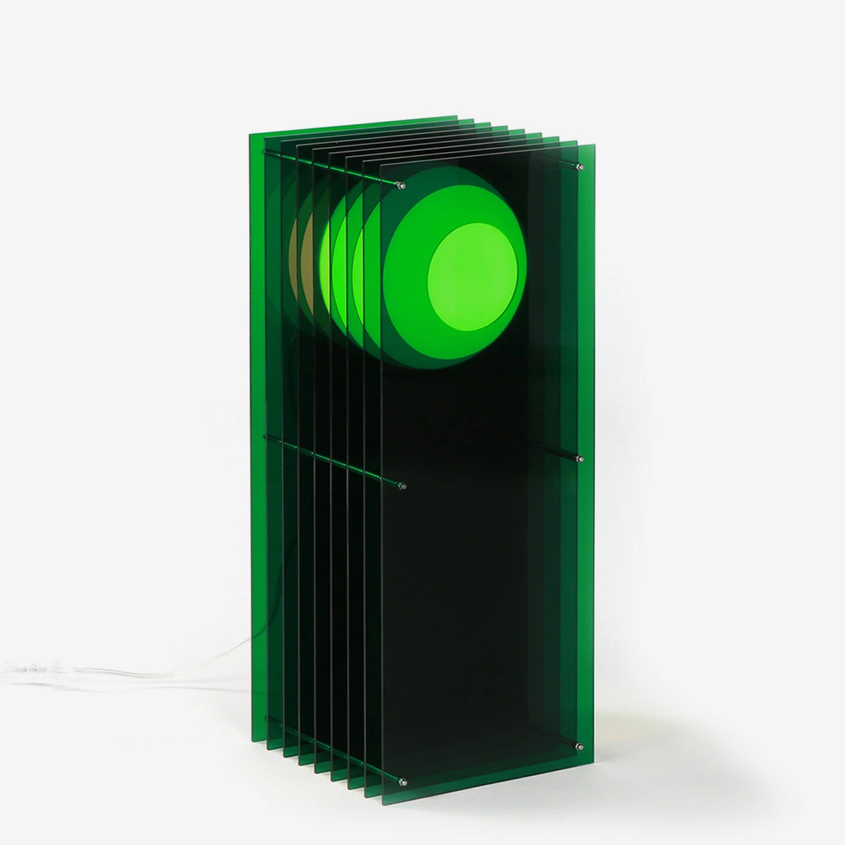 Auf Vietnamesisch bedeutet LỚP „Schichten“, ein passender Name, denn sobald sie beleuchtet werden, erzeugen die Acrylschichten der LỚP Lampen faszinierende Reflexionen der Kugel im Inneren. Diese erinnern an eine Bewegungsspur, wie sie von einer sich bewegenden Kugel hinterlassen wird. Während die Kugel selbst statisch bleibt, verleihen ihre vielfältigen Reflexionen dem Raum eine dynamische Aura.