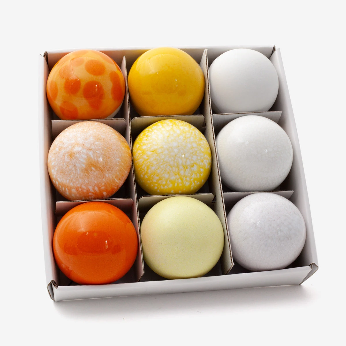 Dieses Set enthält 9 handverlesene Mini Pearls, die perfekt aufeinander abgestimmt sind. Dazu gibt es eine detaillierte Anleitung und 10 Nägel, damit du sie ganz einfach an der Wand arrangieren kannst – einzeln, in Reihen oder als kunstvolle Gruppierung. Das Besondere: jedes Set ist ein Unikat. Du bekommst genau die Pearls, die du auf den Fotos siehst.