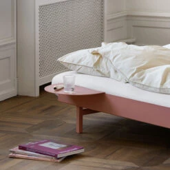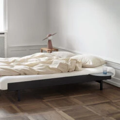 Du kannst das MOEBE Bed optional mit einem oder zwei Nachttischen ausstatten, die direkt in den Rahmen eingehängt werden. Entweder bestellst du gleich einen Lattenrost mit, oder du nutzt einen eigenen. Der Lattenrost muss mindestens 180 cm lang sein, um zum MOEBE Bed zu passen.