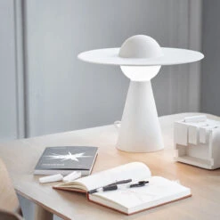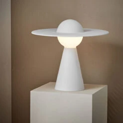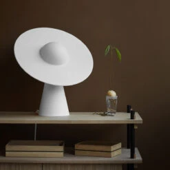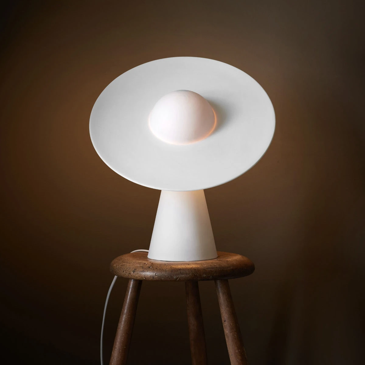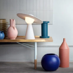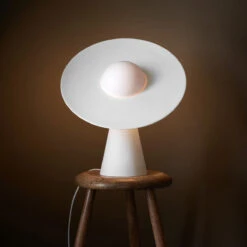 Die Ceramic Table Lamp hat eine skulpturale Form, die in alle Richtungen leuchten kann. Mit einer einfachen Handbewegung kannst du den Lampenschirm in jede gewĂĽnschte Richtung auf der GlĂĽhbirne verschieben und das Licht damit nach Belieben lenken. Die Lampe passt perfekt auf ein Regal, eine Fensterbank oder einen Beistelltisch und eignet sich sowohl als direkte Beleuchtung als auch als Hintergrundlicht.