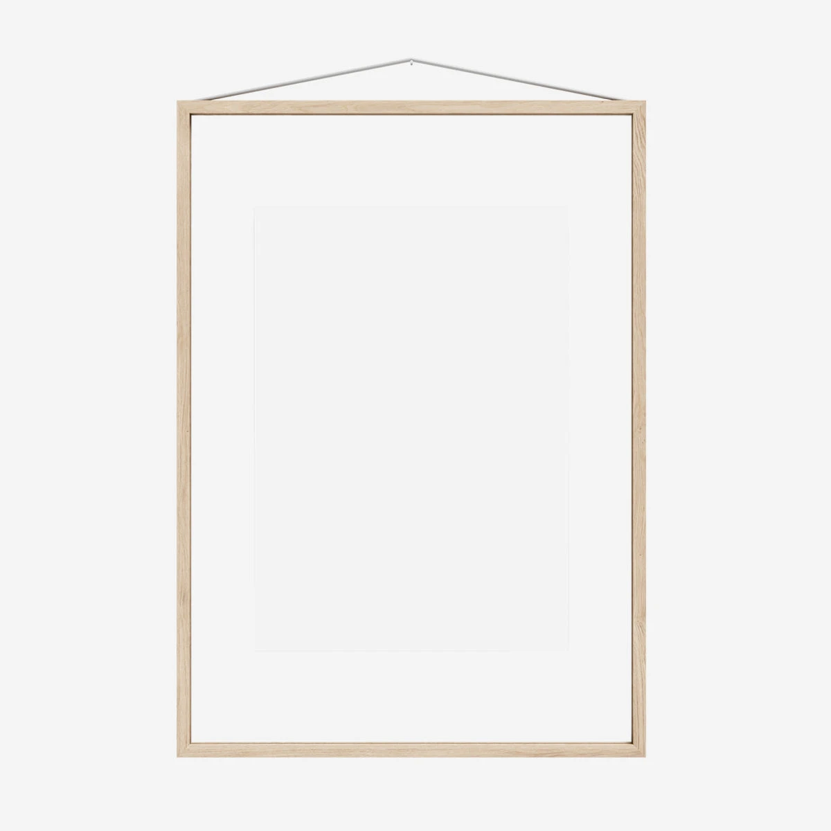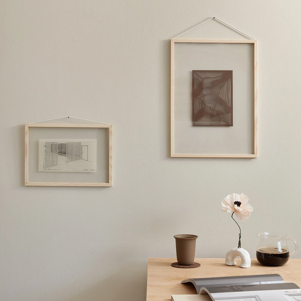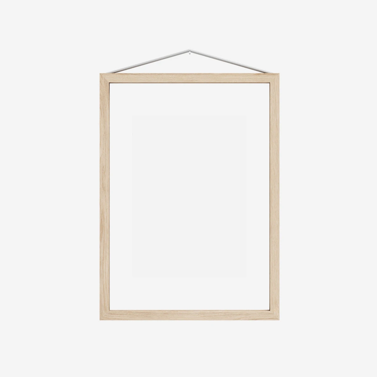So einfach, so perfekt: Die Frames von Moebe bestehen aus zwei Acrylglasscheiben, vier Leisten und einem Gummiband. Das Gummiband hält den Rahmen zusammen und hängt ihn gleichzeitig an der Wand auf. Dank der einfachen, aber raffinierten Konstruktion kannst du den Rahmen horizontal oder vertikal aufhängen und ihn bei freier Aufhängung sogar von beiden Seiten betrachten.
