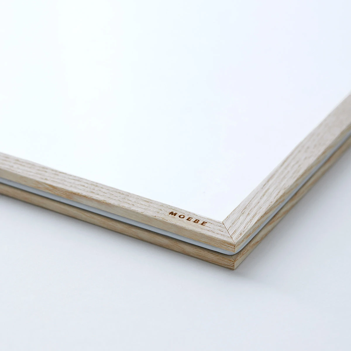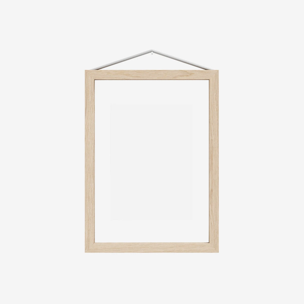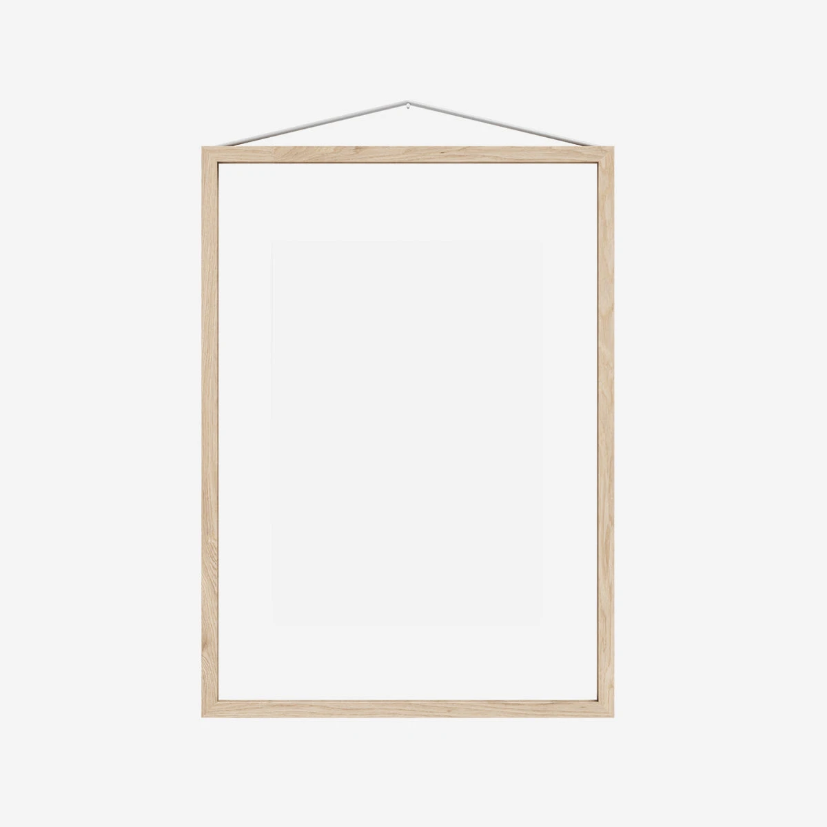So einfach, so perfekt: Die Frames von Moebe bestehen aus zwei Acrylglasscheiben, vier Leisten und einem Gummiband. Das Gummiband hält den Rahmen zusammen und hängt ihn gleichzeitig an der Wand auf. Dank der einfachen, aber raffinierten Konstruktion kannst du den Rahmen horizontal oder vertikal aufhängen und ihn bei freier Aufhängung sogar von beiden Seiten betrachten.