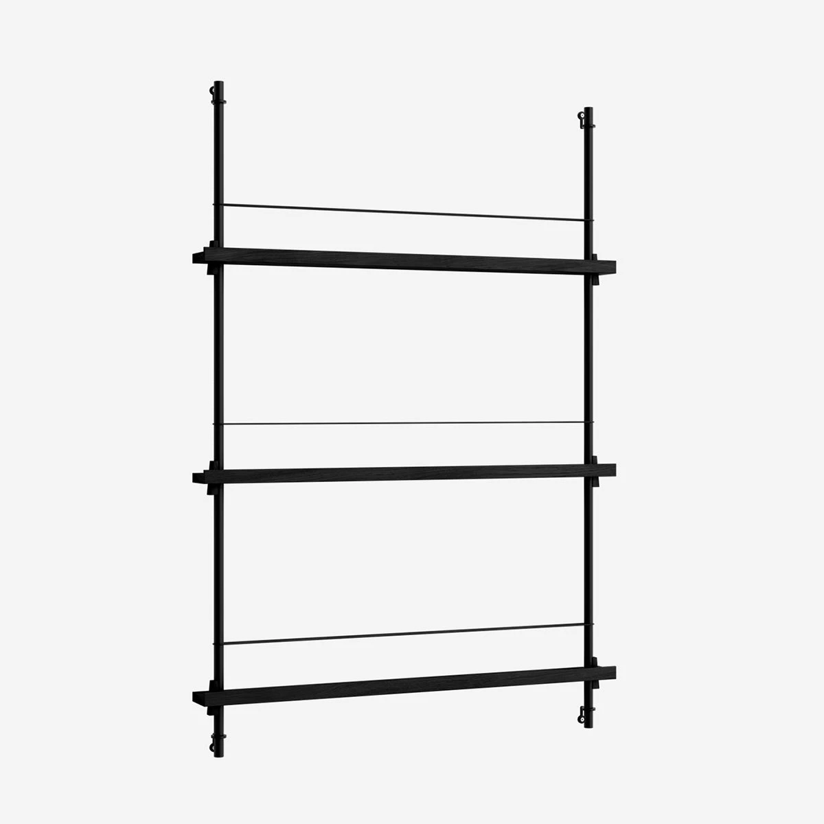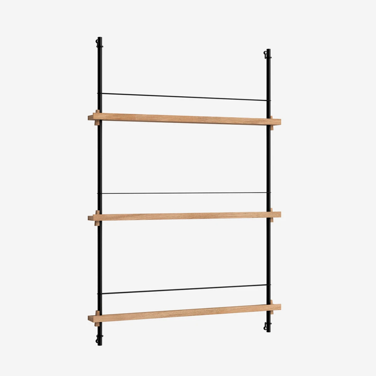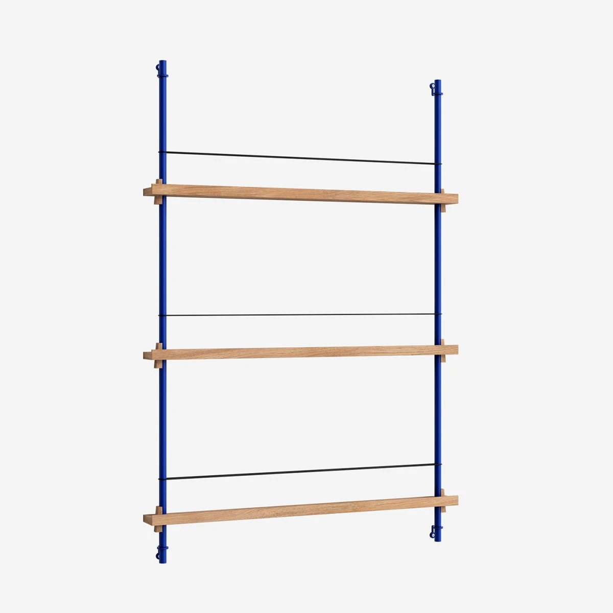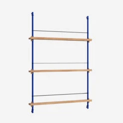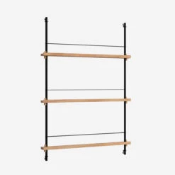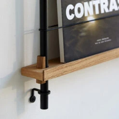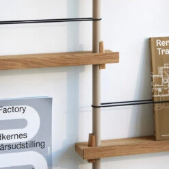 Die smarte Art, Zeitschriften, Bücher, LP-Cover oder schöne Prints auszustellen: das MOEBE Magazine Shelving. Auf schmalen Boards stehen Objekte, die mit einem schlichten Gummiband gesichert werden. Die Boards sind vollkommen flexibel in der Höhe einstellbar.