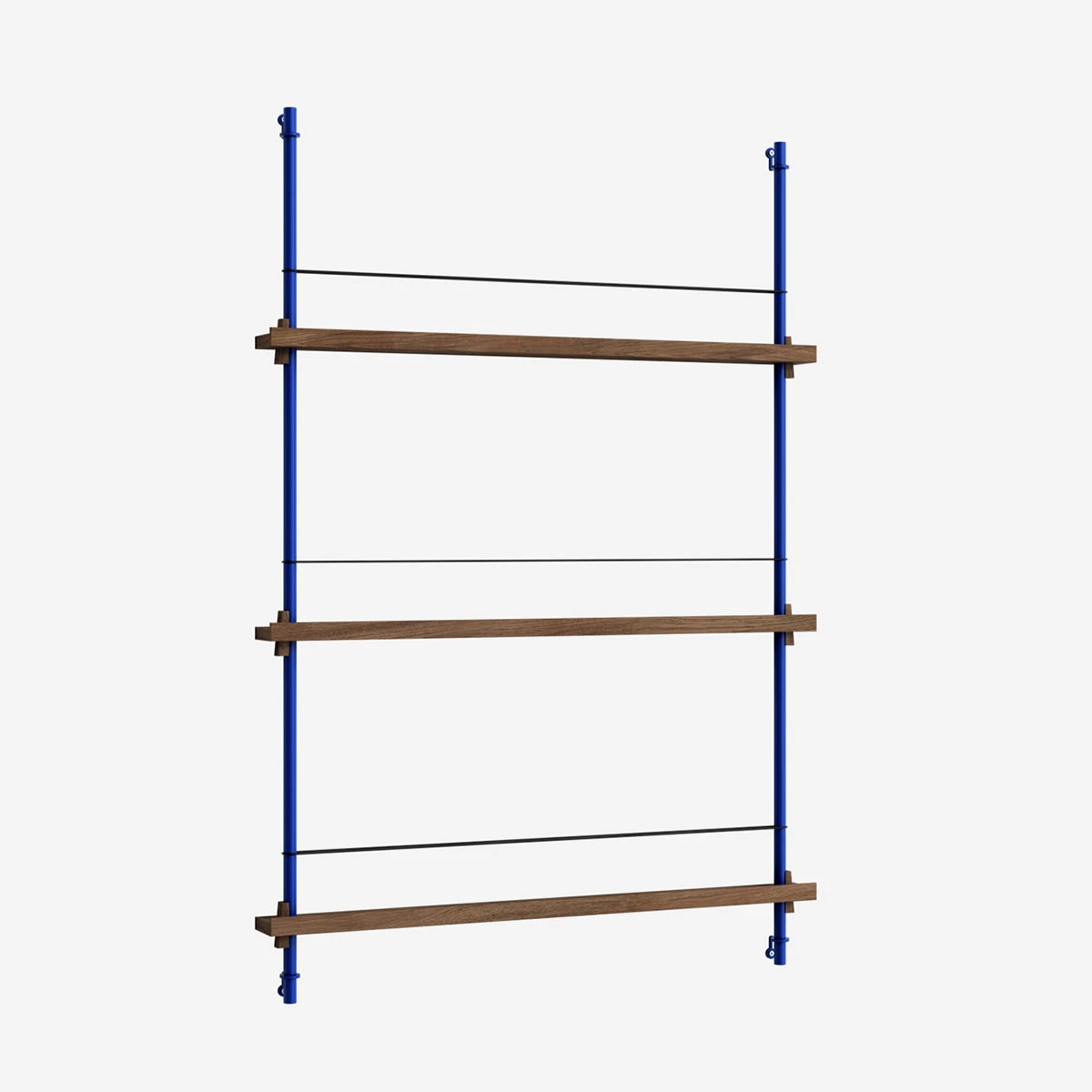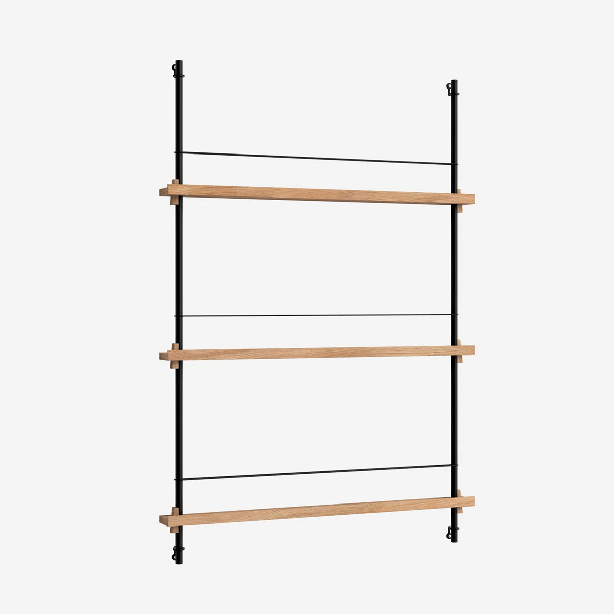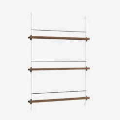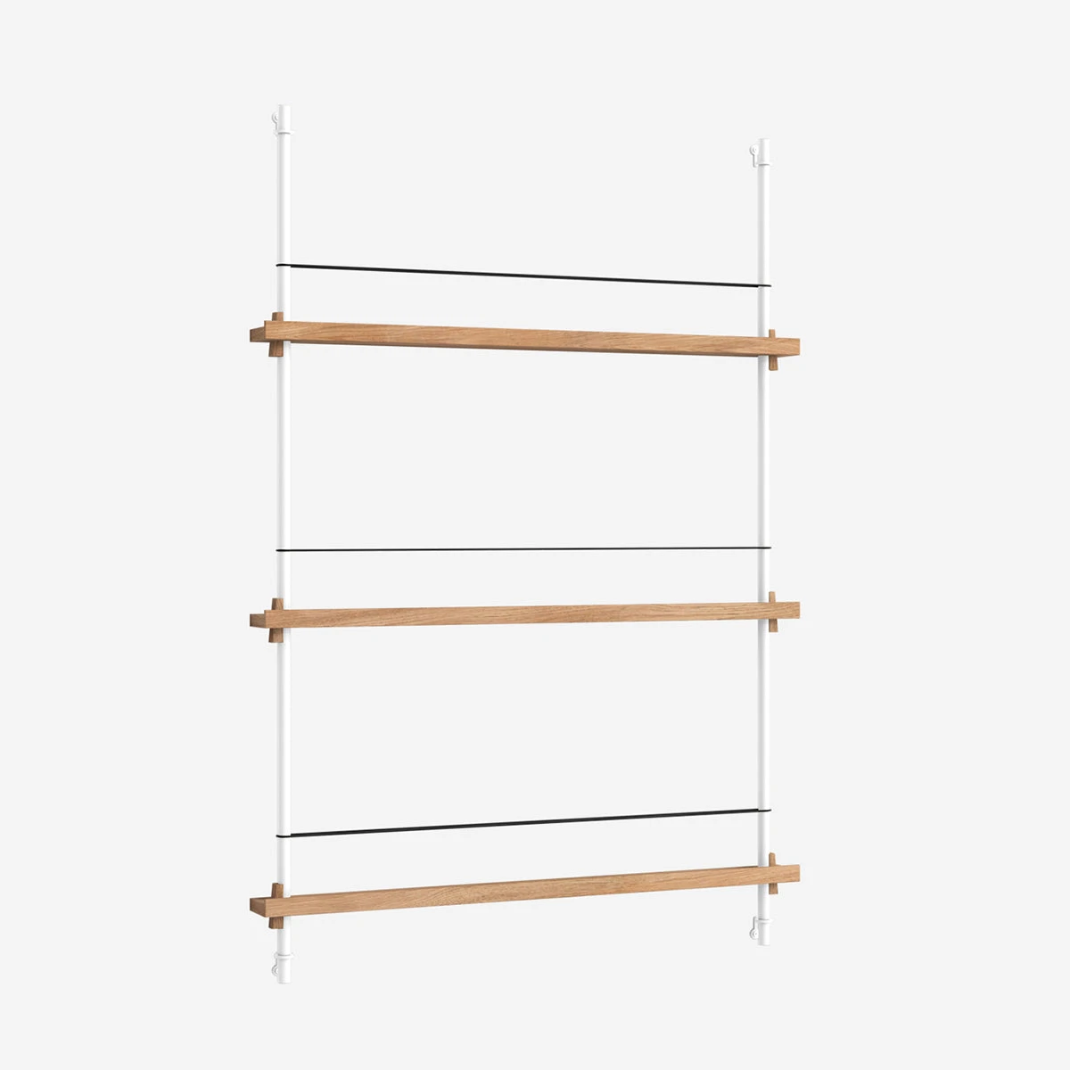 Die smarte Art, Zeitschriften, Bücher, LP-Cover oder schöne Prints auszustellen: das MOEBE Magazine Shelving. Auf schmalen Boards stehen Objekte, die mit einem schlichten Gummiband gesichert werden. Die Boards sind vollkommen flexibel in der Höhe einstellbar.