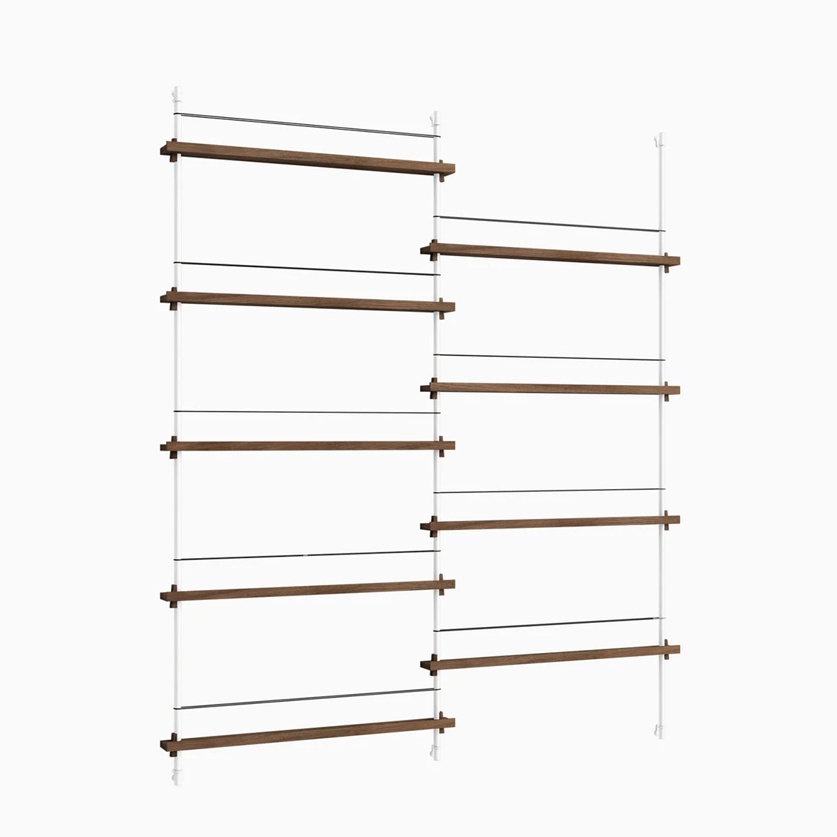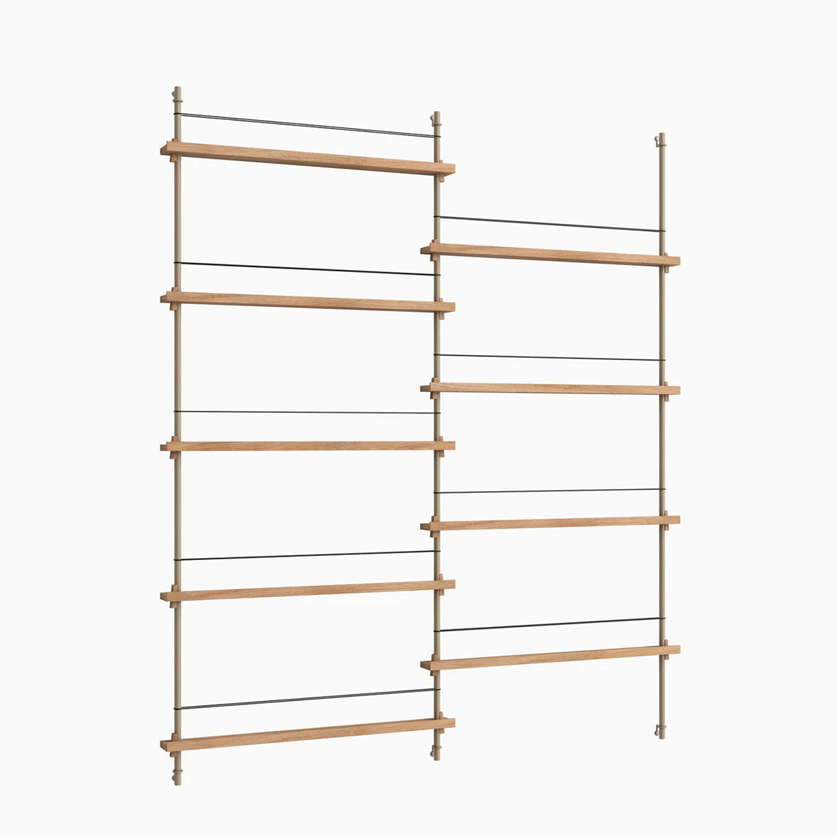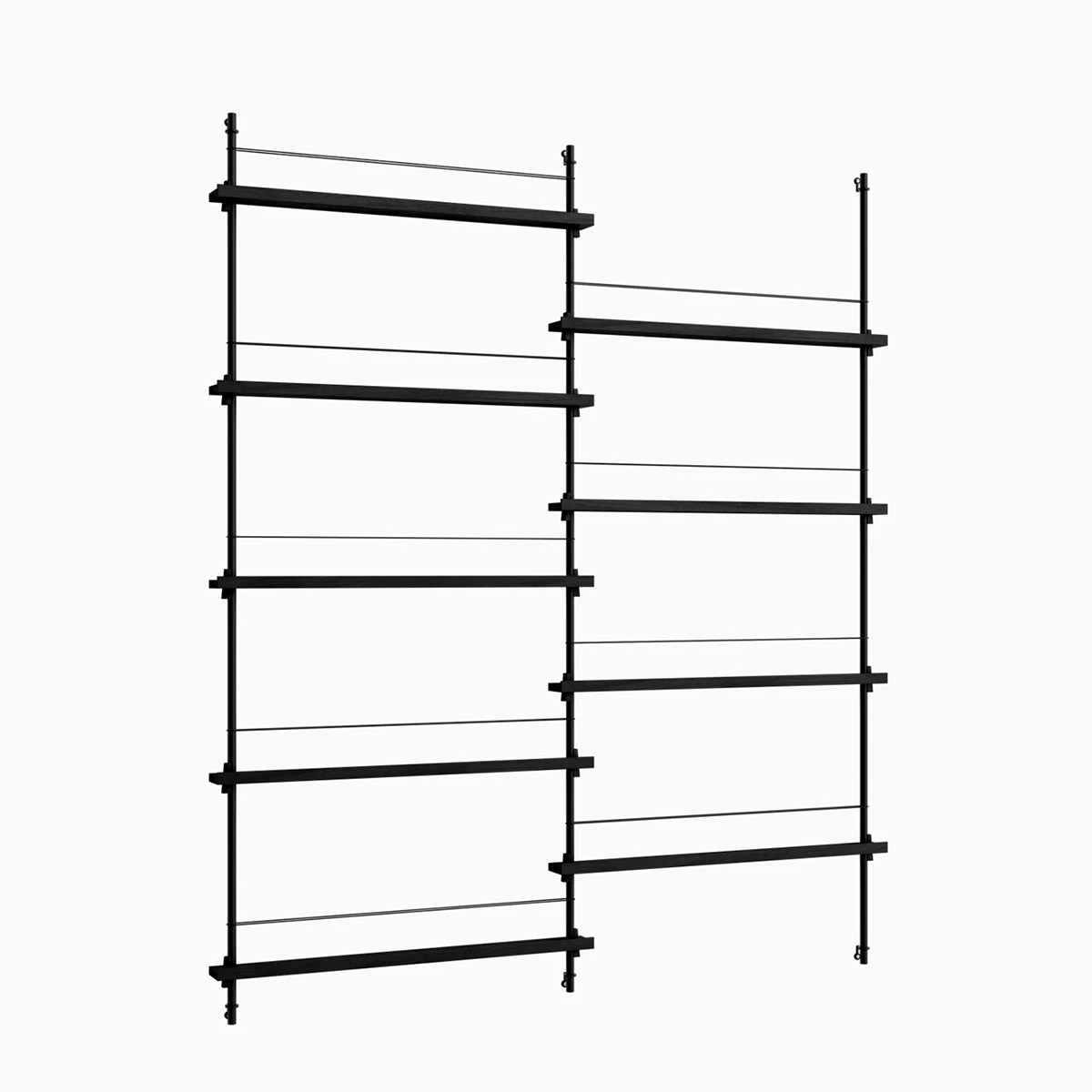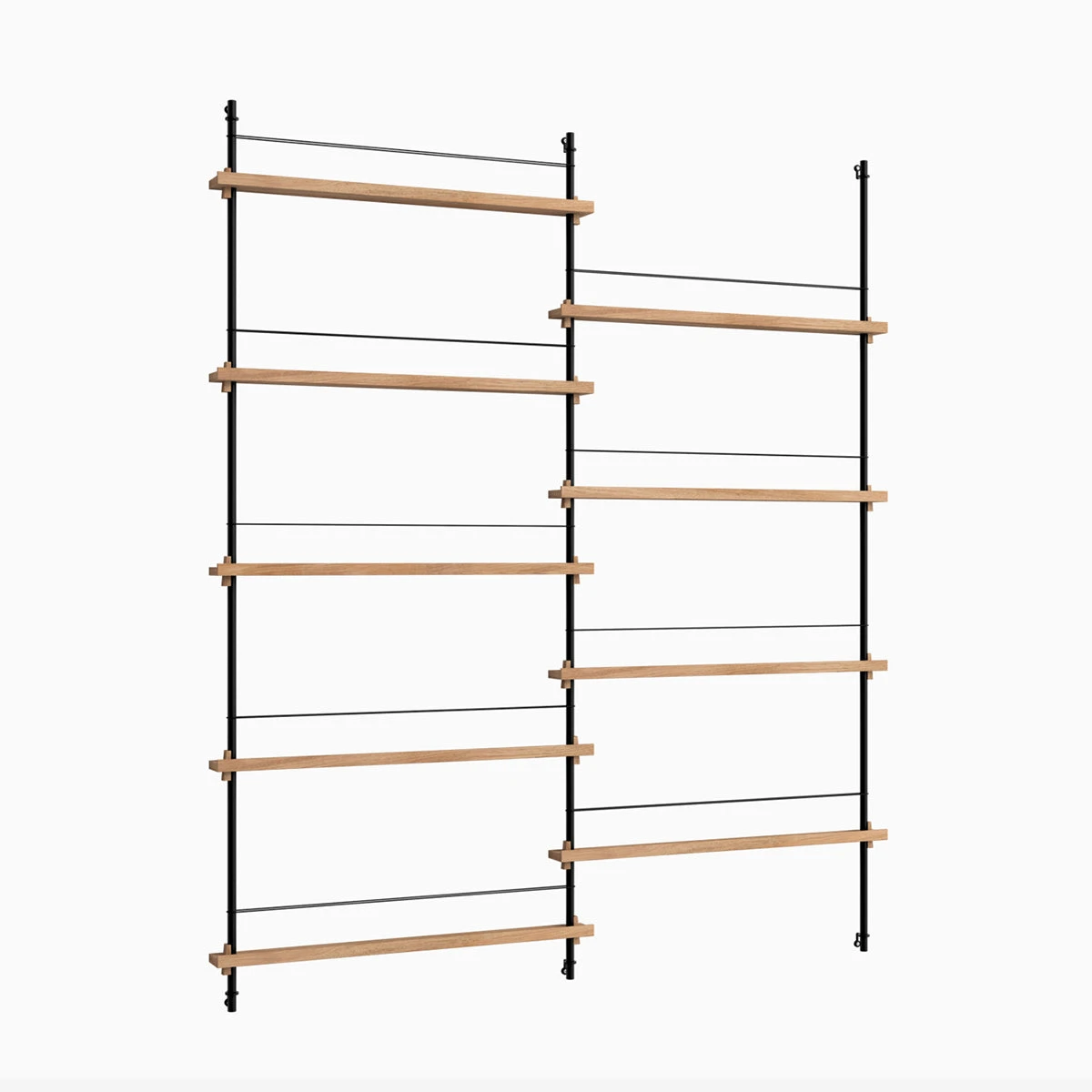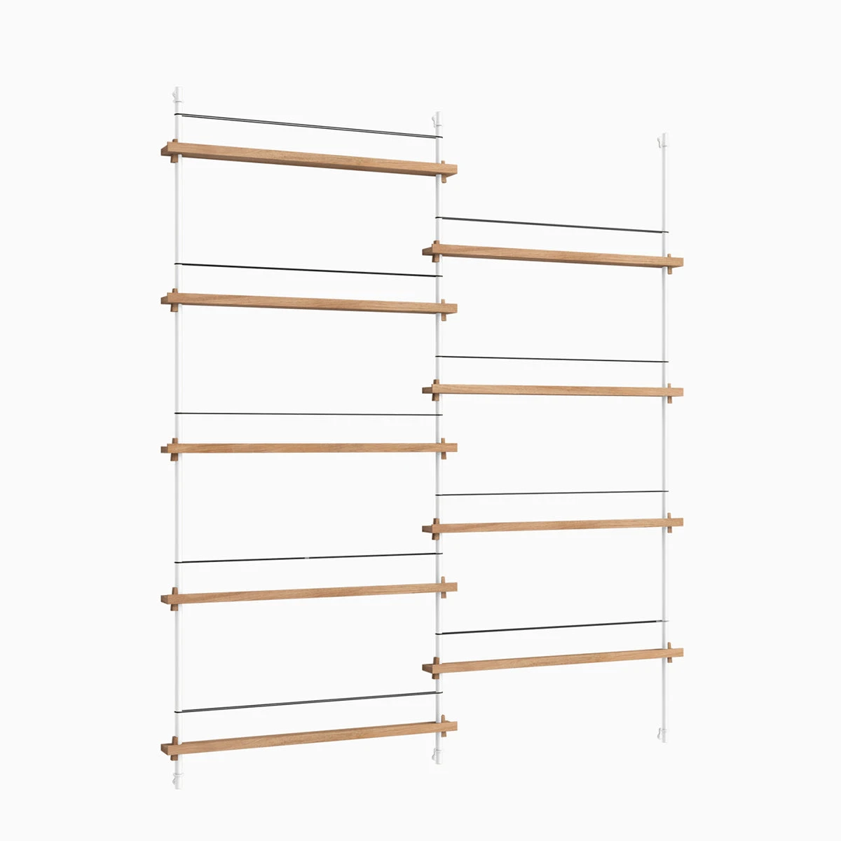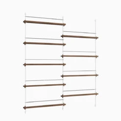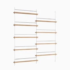Die smarte Art, Zeitschriften, Bücher, LP-Cover oder schöne Prints auszustellen: das MOEBE Magazine Shelving. Auf schmalen Boards stehen Objekte, die mit einem schlichten Gummiband gesichert werden. Die Boards sind vollkommen flexibel in der Höhe einstellbar.