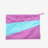 Die plissierten Y-Bags von Multitudes sind aus einem Seidenstoff aus 100 % recyceltem Polyester gemacht. Derselbe Stoff wird für das bunte Innenfutter verwendet. Der zweifarbige Henkel ist mit einem goldenen Karabiner versehen, an dem du deine Schlüssel oder eine Clutch befestigen und sicher in der Tasche aufbewahren kannst.