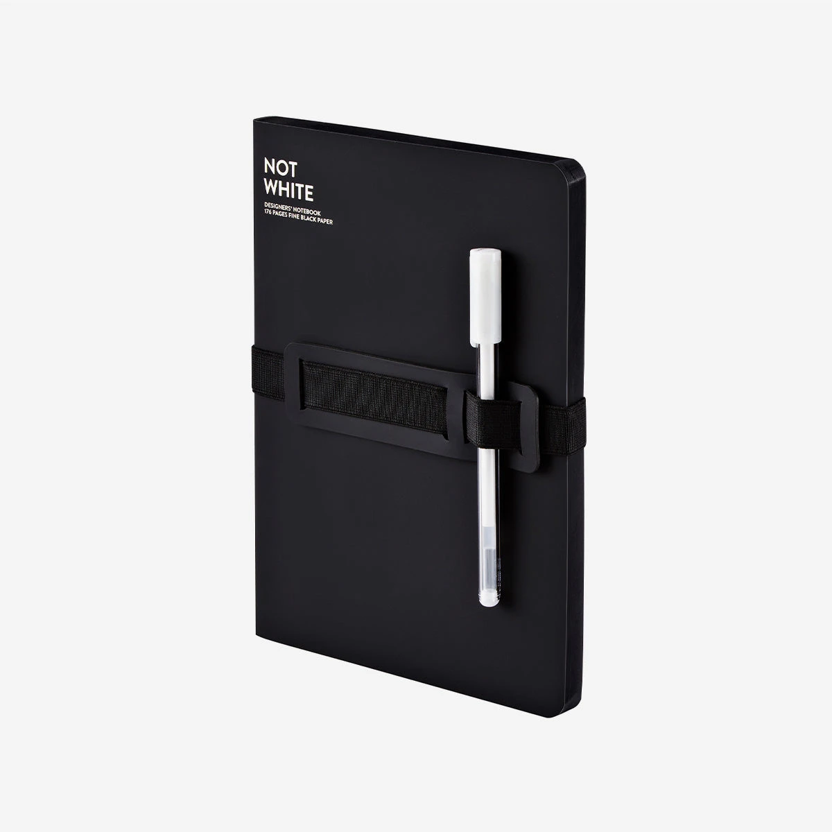 Als Extra kommt das Notizbuch Not White mit einem “Anti-Handbag Textilband” mit passendem weißem Gel Stift. Das elastische Band ist ein Verschlussband, Stift- und Smartphone-Halter in einem. Das perfekte Set, um die Dinge umzukrempeln.