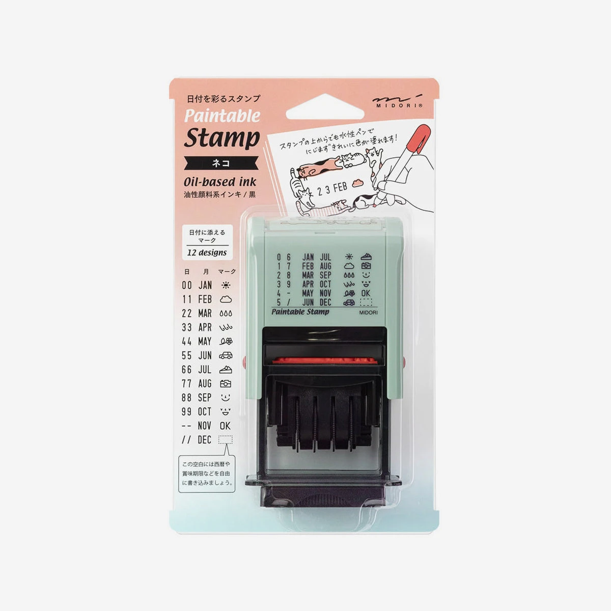 Für kreative Kalenderkünstler – der Midori Paintable Rotating Date Stamp „Cat“
