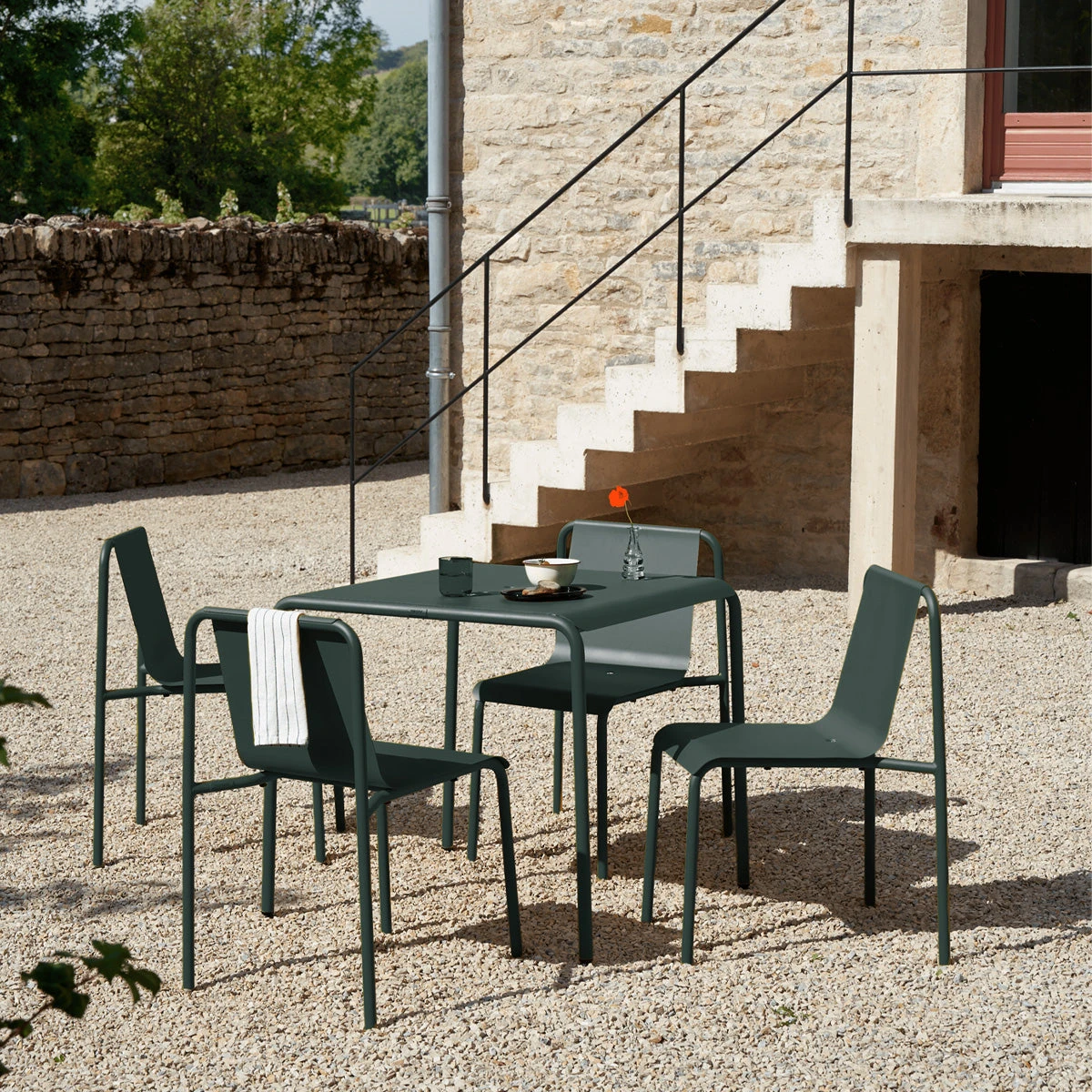 Die leicht geschwungene Sitzfläche erinnert an feine Faltenwürfe, während die dezenten Perforationen für eine grafische Note sorgen und Regenwasser ganz nebenbei abfließen lassen. Wahlweise mit oder ohne Armlehnen erhältlich, passt sich der Stuhl deinen Vorlieben und deinem Außenbereich flexibel an – vom Stadtbalkon bis zur großen Terrasse.
