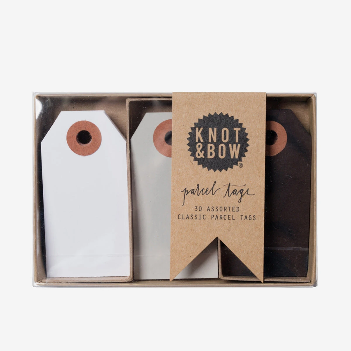 Schöner schenken: mit den 30 farblich abgestimmten Geschenkanhängern aus dem Parcel Tag Trio von Knot & Bow machst du aus jedem Päckchen etwas Besonderes.