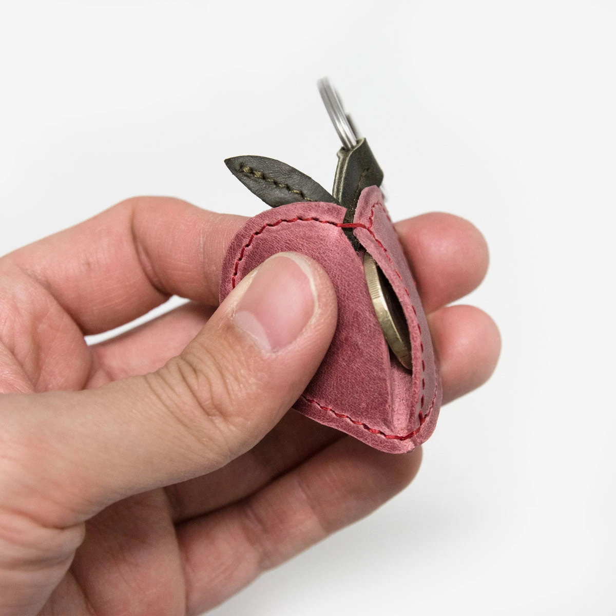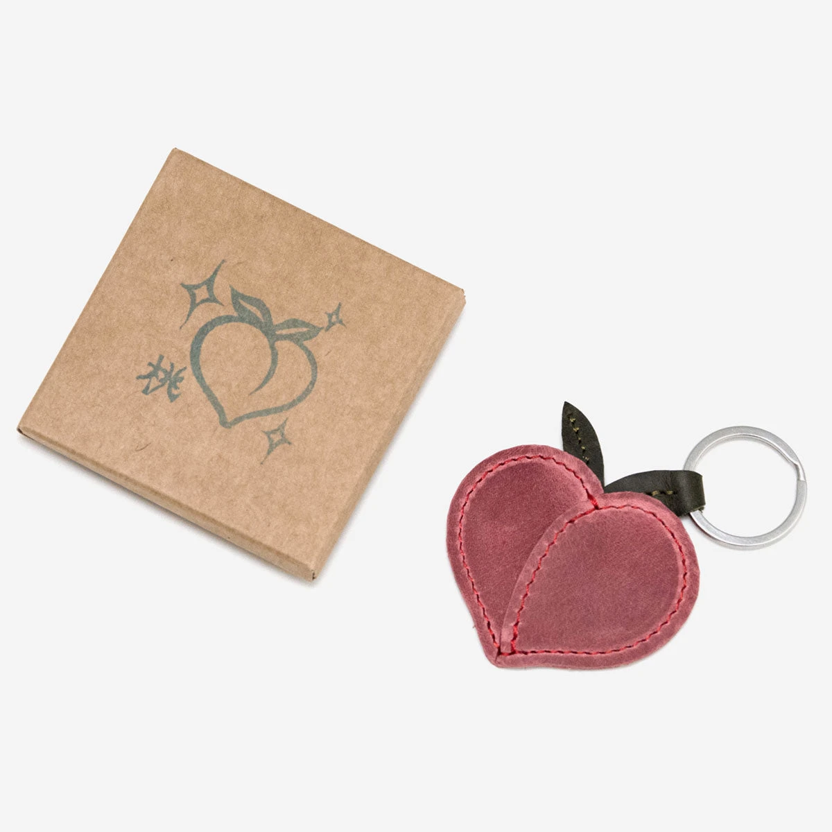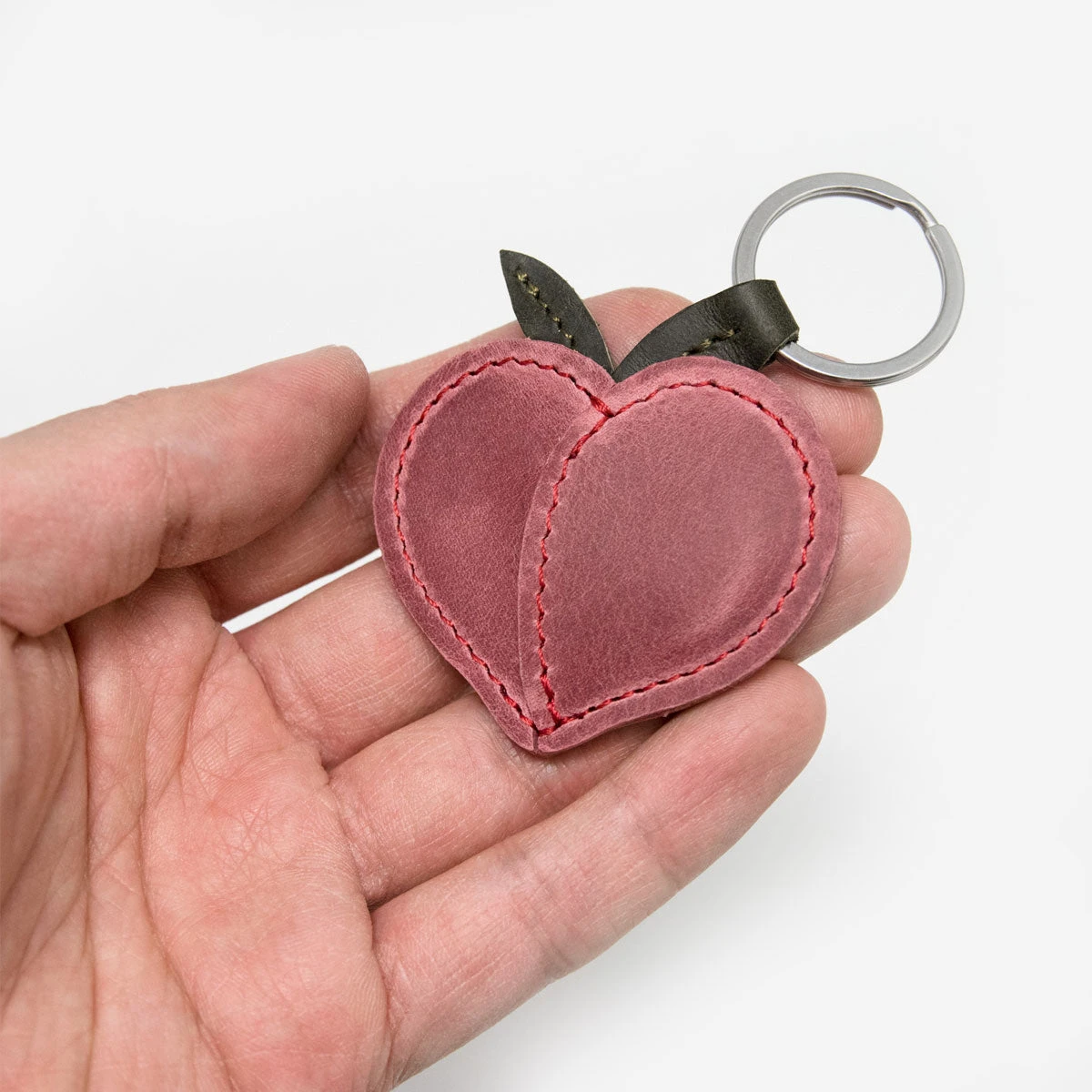 Wunderschöner handgemachter Schlüsselanhänger aus Leder in Form eines Pfirsichs.